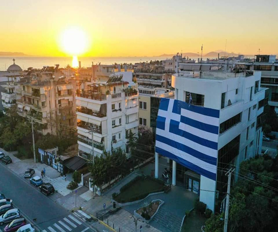Η μεγάλη αγκαλιά της ελληνικής σημαίας στο Δημαρχείο Γλυφάδας