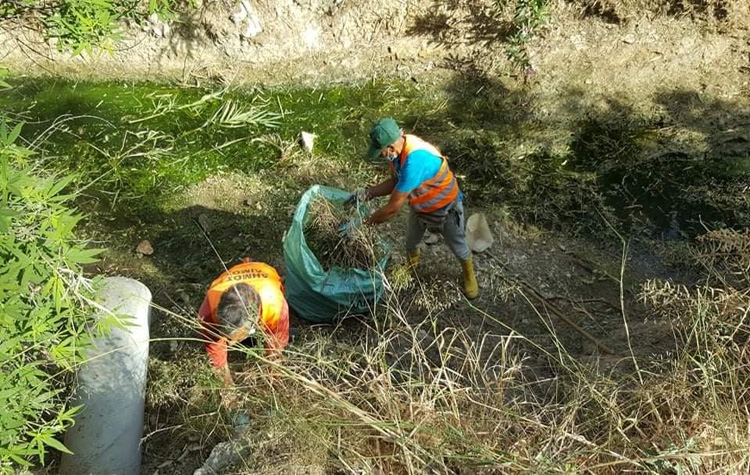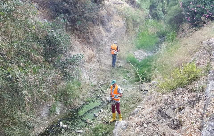 Αποψιλώνουμε τις όχθες και τα πρανή, φροντίζουμε το πράσινο, ψεκάζουμε για τα κουνούπια, πλένουμε με νερό κάποια σημεία, που θέλουν περισσότερη επιμονή.