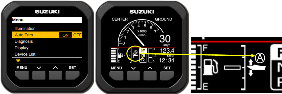 ・Το πρώτο αυτόματο σύστημα trim της Suzuki, το οποίο προσαρμόζει αυτόματα την κλίση του εξωλέμβιου κινητήρα στην κατάλληλη γωνία κατά την πλοήγηση, υιοθετήθηκε για μια πιο άνετη πλεύση και καλύτερη οικονομία καυσίμου, ανεξάρτητα από τις δεξιότητες του χειριστή.