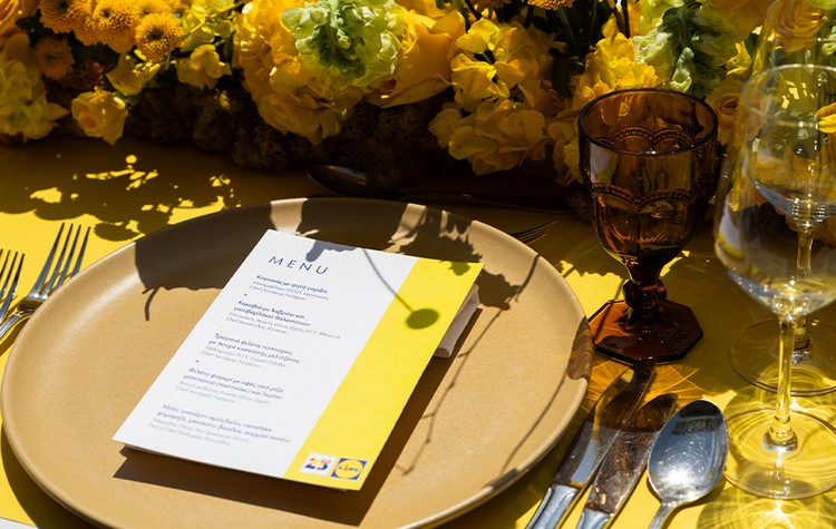 Σε χαλαρό κλίμα οι προσκεκλημένοι είχαν την ευκαιρία να απολαύσουν ένα ξεχωριστό γεύμα 5 πιάτων, δια χειρός του βραβευμένου με αστέρι Michelin chef Λευτέρη Λαζάρου, σε συνεργασία με τον chef Απόστολο Αλτάνη και τον pastry chef Θοδωρή Μωυσίδη. Το menu ήταν εμπνευσμένο από τις εκλεκτές γεύσεις της σειράς τοπικών και ποιοτικών προϊόντων «Νώμα» της Lidl Ελλάς, οι οποίες παρουσιάστηκαν σε ανανεωμένη, επετειακή εμφάνιση.