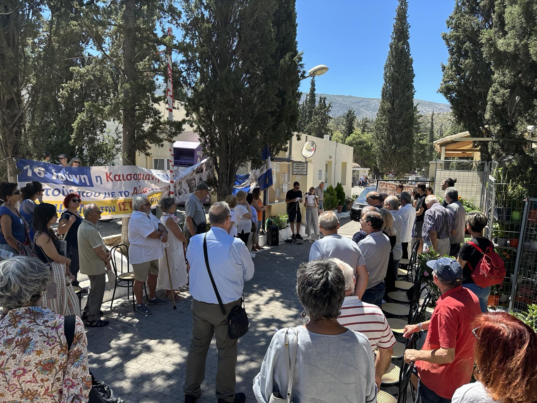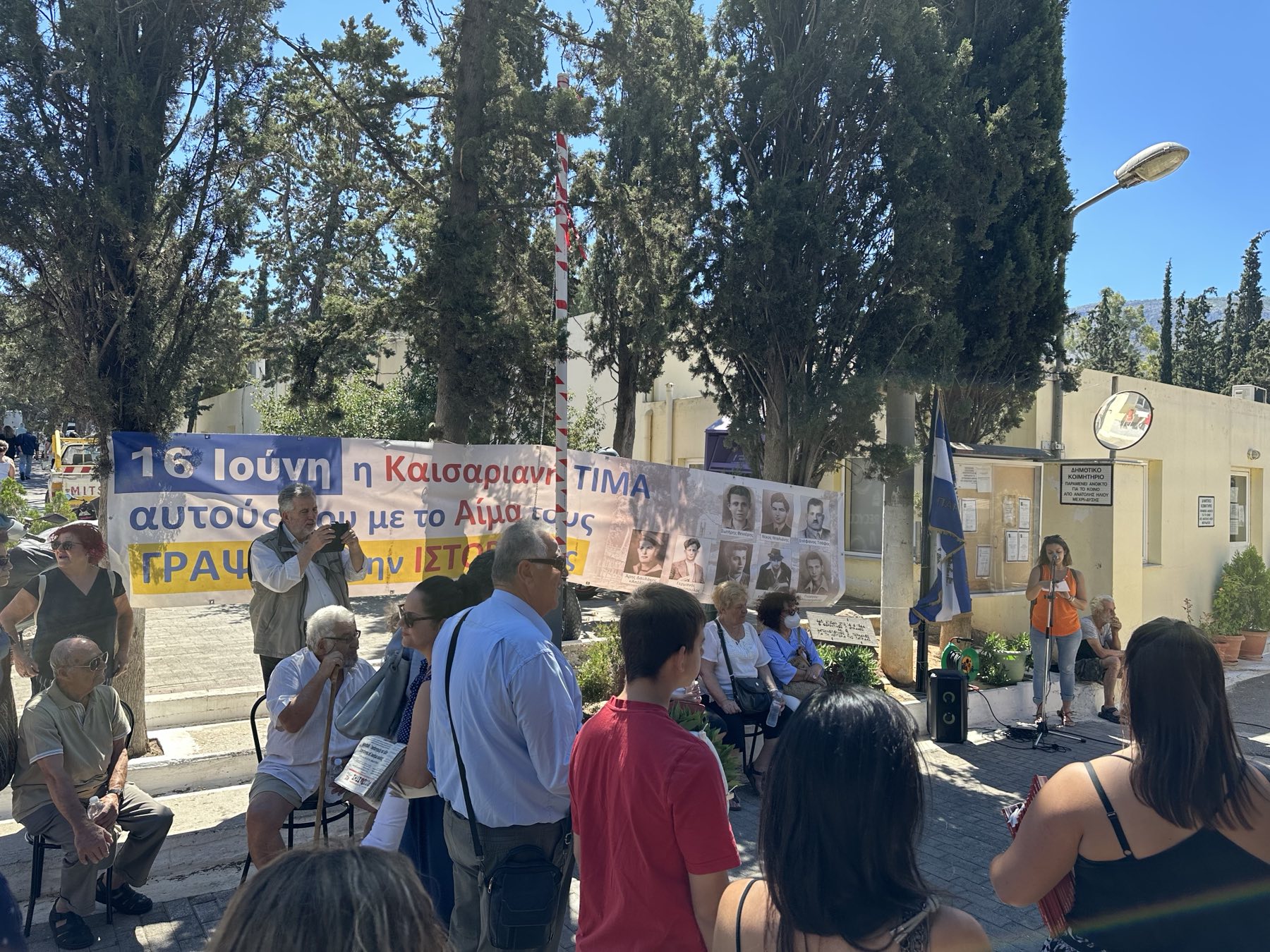 «Καισαριανή αλύγιστη! Η Καισαριανή το Στάλινγκραντ της Ελλάδας, αντιμετώπισε με μοναδικό στον κόσμο ηρωισμό, τους Γερμανούς, τους Ράλληδες, τους Μπουραντάδες και τους χωροφύλακες! Πριν από 80 χρόνια, στις 16 προς 17 Ιούνη του 1944 έγινε η πιο αιματηρή μάχη της Καισαριανής». Με τα λόγια αυτά ξεκίνησε την ομιλία του ο Παναγιώτης Κουμαριώτης, μέλος της Εξελεγκτικής Επιτροπής του Παραρτήματος Καισαριανής της ΠΕΑΕΑ – ΔΣΕ σε μνημείο έξω από το Κοιμητήριο Καισαριανής.