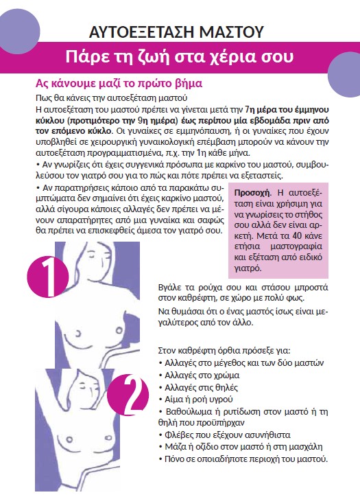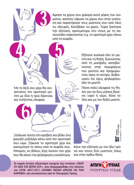 Με αφορμή την καθιέρωση του μήνα Οκτωβρίου, διεθνώς, ως μήνα πρόληψης και ενημέρωσης για τον καρκίνο του μαστού και την υλοποίηση του προγράμματος «ΦΩΦΗ ΓΕΝΝΗΜΑΤΑ» στη χώρα μας, οι Επισκέπτριες Υγείας του Κέντρου Υγείας Βύρωνα, με την υποστήριξη του Υπεύθυνου Συντονισμού Επιστημονικής Λειτουργίας κ. Ψυχάρη Παναγιώτη και της Αναπληρώτριας κ. Ράπτη Αικατερίνης, συμμετέχουν στη δράση του Υπουργείου Υγείας με στόχο την ενθάρρυνση των γυναικών στη μηνιαία αυτοεξέταση και την ετήσια μαστογραφία.