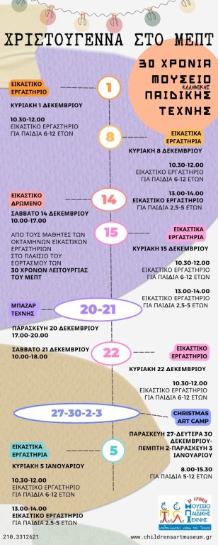 Στις 14 Δεκεμβρίου 2024 το Μουσείο Ελληνικής Παιδικής Τέχνης συμπληρώνει τα 30 χρόνια λειτουργίας του και προσκαλεί με χαρά στα γενέθλιά του τους μικρούς και τους μεγάλους φίλους του και όλους όσους αγαπούν και συνδέονται με την τέχνη!