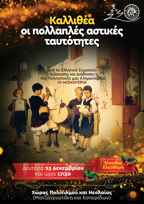 Χώρος Πολιτισμού και Νεολαίας (Ματζαγριωτάκη και Εσπερίδων)Δευτέρα 23 Δεκεμβρίου, ώρα 17:30