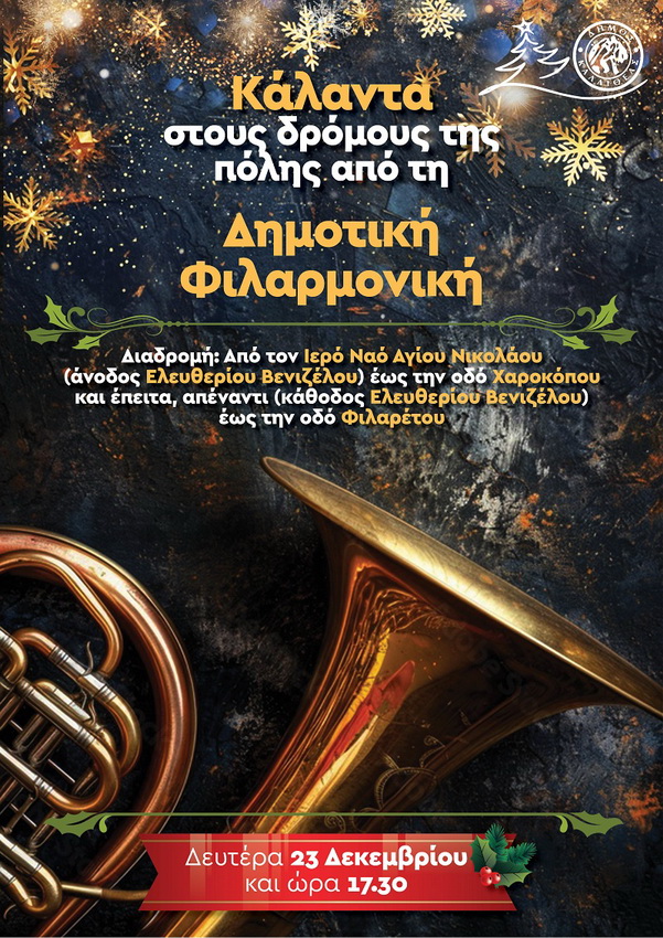 Κάλαντα στους δρόμους της πόλης από τη Δημοτική Φιλαρμονική