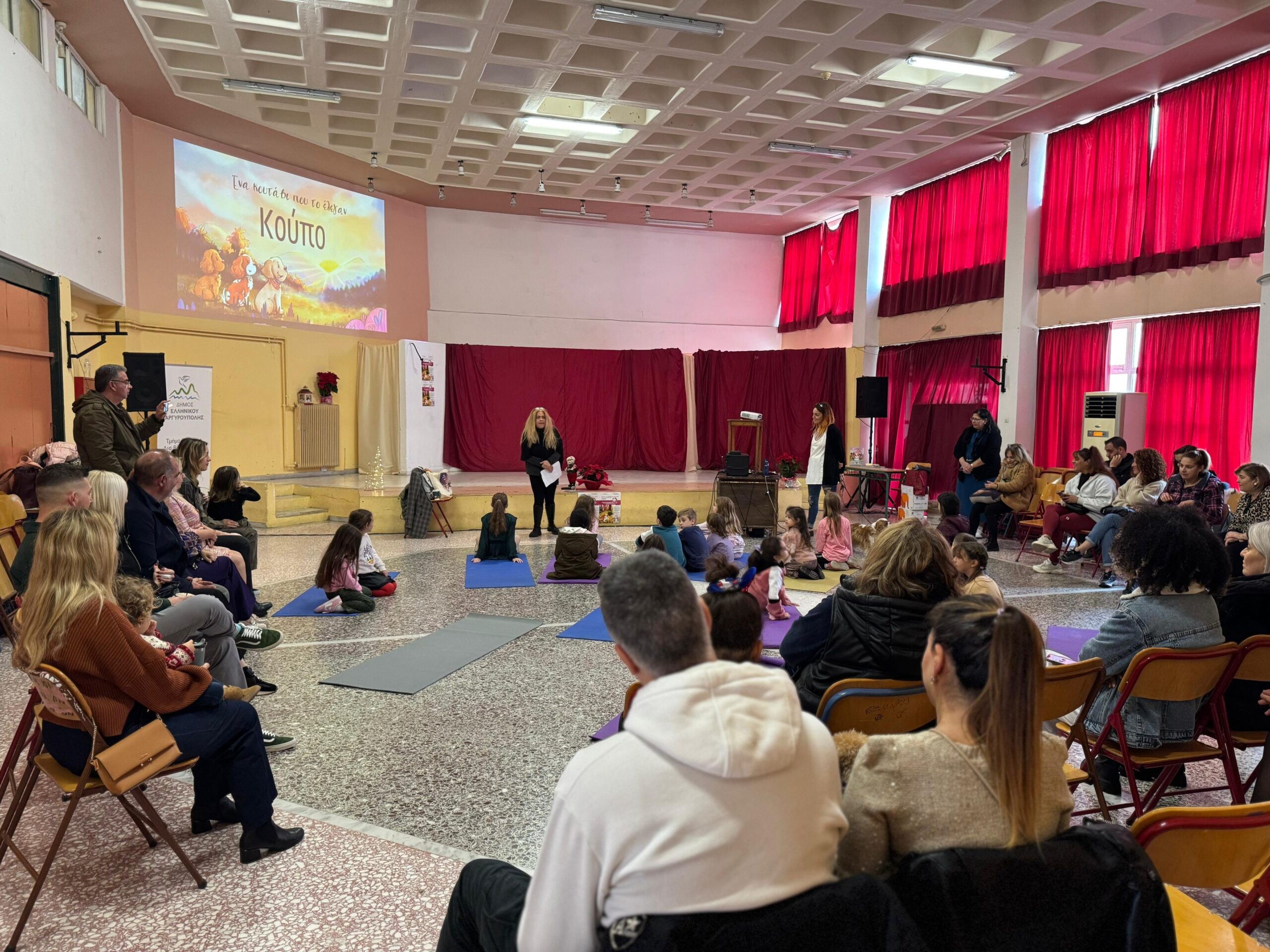 Την Κυριακή 15 Δεκεμβρίου η Διεύθυνση Παιδείας, Δια Βίου Μάθησης και Νέας Γενιάς του Δήμου Ελληνικού Αργυρούπολης πραγματοποίησε εκδήλωση αφιερωμένη στο βιβλίο «Ένα κουτάβι που το έλεγαν Κούπο», της συγγραφέως Katt Sway.Το βιβλίο αυτό με επίκεντρο τον χαριτωμένο Κούπο, το αξιαγάπητο κουταβάκι, αγγίζει με έναν ξεχωριστό τρόπο ζητήματα όπως η επιθετικότητα στο σχολικό περιβάλλον, η αποδοχή της διαφορετικότητας, η καλοσύνη και η φιλία.