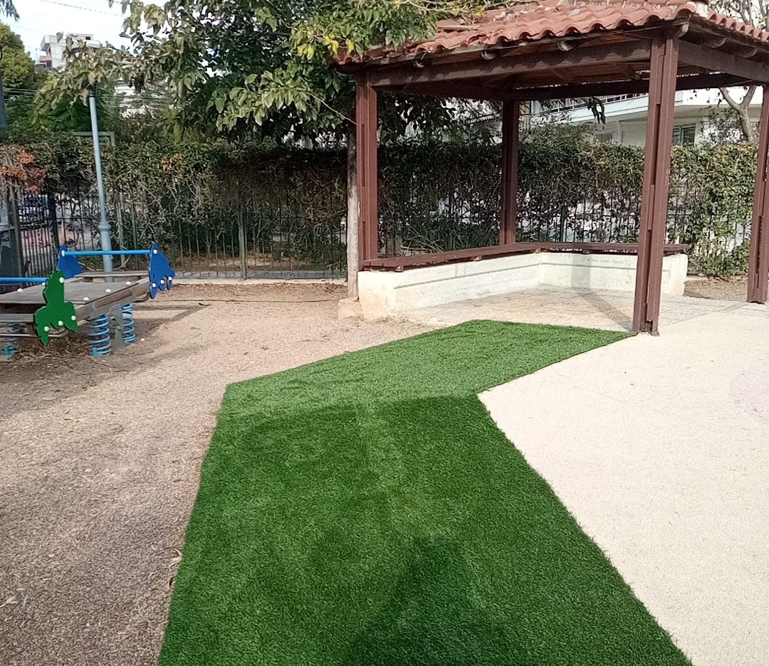 Όπως αναφέρεται σε ανακοίνωση του Δήμου, αυτή τη φορά σειρά είχε η παιδική χαρά της οδού Ελλησπόντου στην οποία τοποθετήθηκε νέος πλαστικός χλοοτάπητας στους τσιμεντένιους διαδρόμους.
