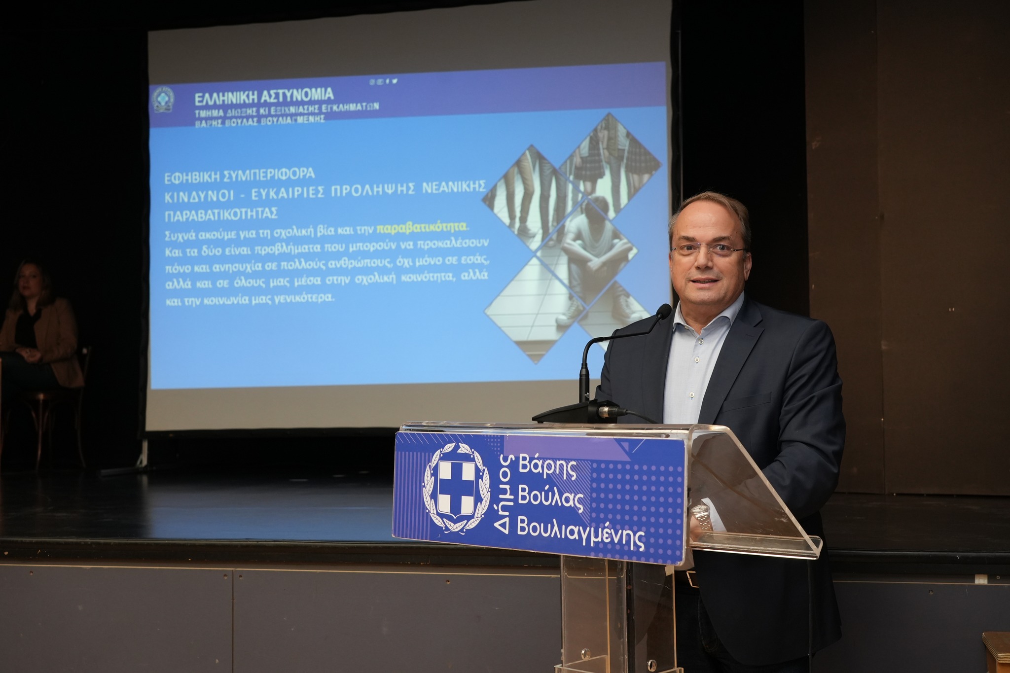 Εξαιρετικές ομιλίες, ο κάθε ένας στον τομέα του μοιράστηκαν με το κοινό η Ευρυδίκη Σουλιώτη – Διοικητής Τμήματος Δίωξης κι εξιχνίασης εγκλημάτων Βάρης Βούλας Βουλιαγμένης, η Ιωάννα Χατζάτογλου – Κοινωνική Λειτουργός – Προϊσταμένη Τμήματος Δημόσιας Υγείας Δήμου Βάρης Βούλας Βουλιαγμένης, η οποία παρουσίασε τη νέα δυναμική πλατφόρμα του Δήμου για καταπολέμηση του σχολικού εκφοβισμού, ο Δημήτρης Ευαγγέλου – Σύμβουλος ηλεκτρονικής ασφάλειας – Εγκεκριμένος από την Ελληνική Αστυνομία, η Χριστίνα Παπαστεφανάτου – Ψυχολόγος ΕΔΥ σχολείων του Δήμου Βάρης Βούλας Βουλιαγμένης, ενώ την παράσταση έκλεψαν μαθητές σχολείων του Δήμου οι οποίοι μίλησαν για το συγκεκριμένο θέμα.
