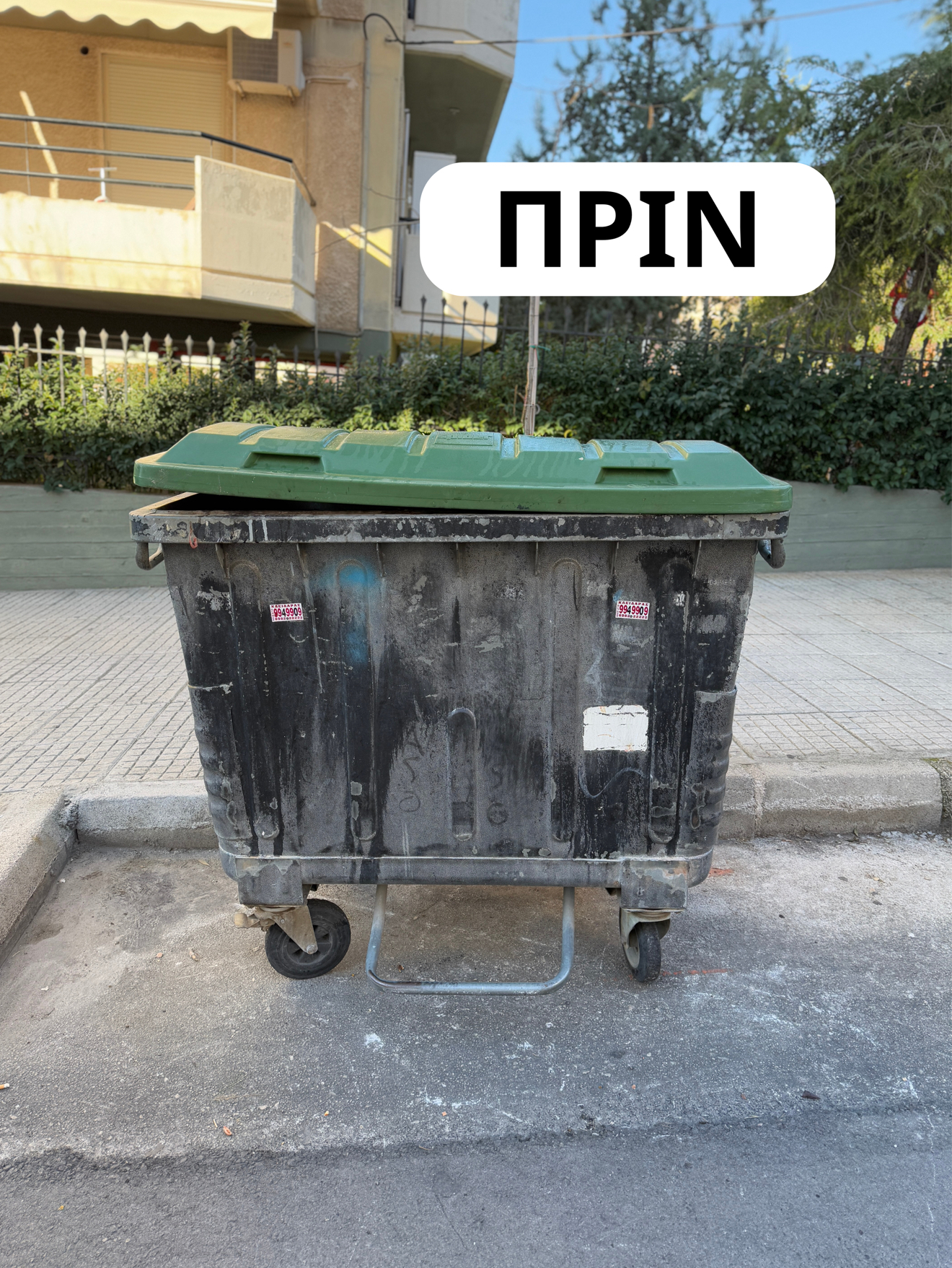 Να σημειωθεί ότι το αρμόδιο τμήμα καθαριότητας καταγράφει τις ζημιές που υπάρχουν στους κάδους και προχωρά στην αντικατάσταση τους με προτεραιοποίηση σύμφωνα με συγκεκριμένα κριτήρια, (βαθμό καταστροφής των κάδων, εγγύτητα σε σχολεία, κλπ). Σε πρώτη φάση η αντικατάσταση αφορά πράσινους κάδους 1100 λίτρων και μεσαίων κάδων 660 λίτρων.