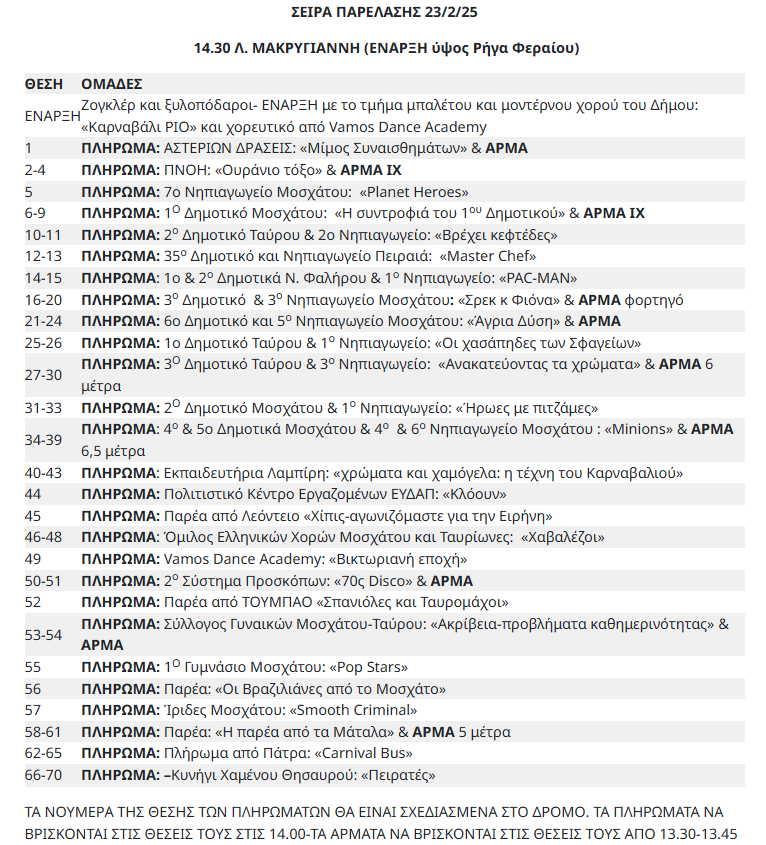 Δείτε παρακάτω τη σειρά & τους φορείς που θα συμμετέχουν στην παρέλαση:
