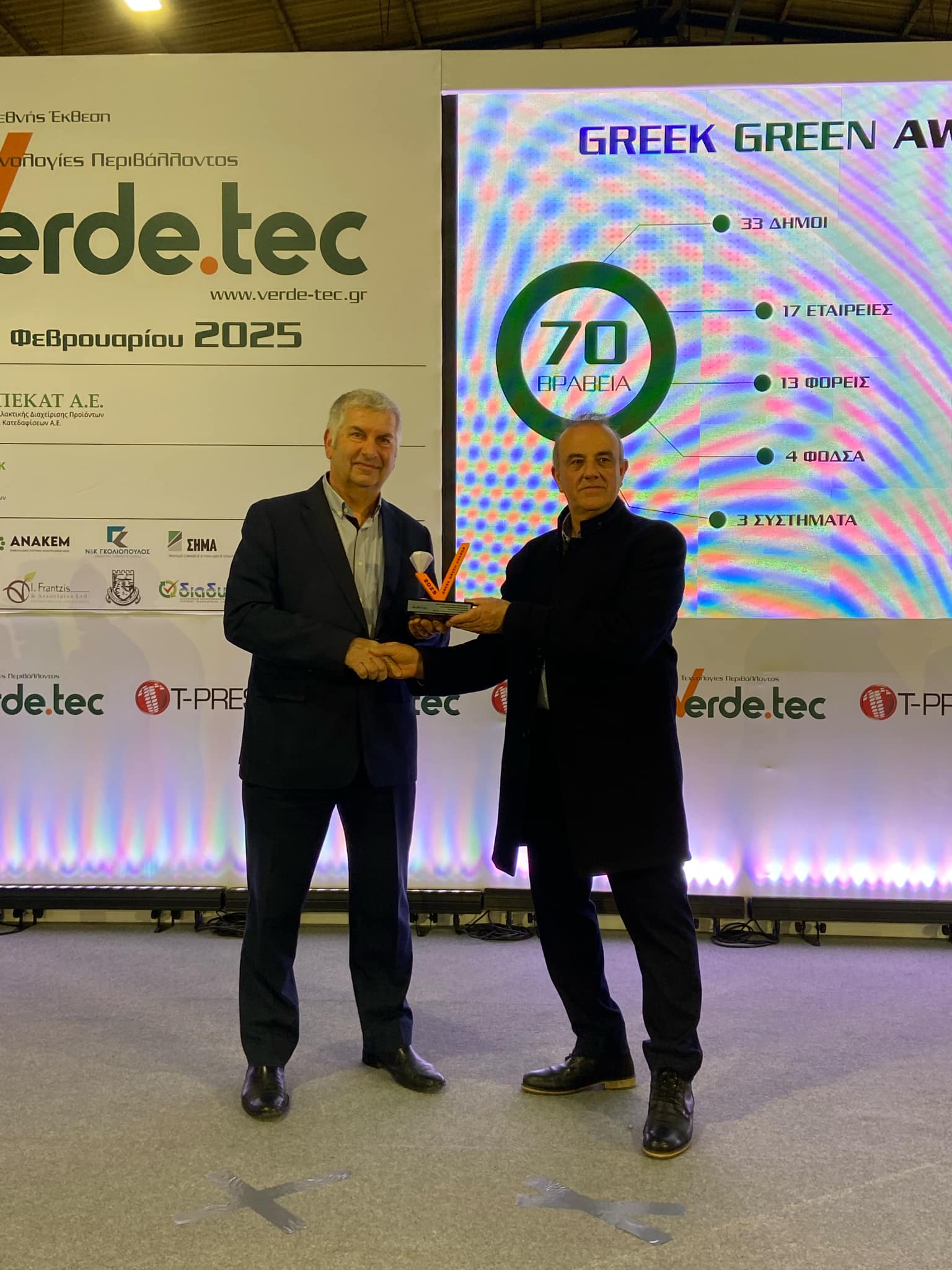 Με το τιμητικό Βραβείο των Greek Green Awards 2025 στην έκθεση τεχνολογιών περιβάλλοντος Verde.Tec στο Mec Παιανίας βραβεύθηκε η Επιτροπή Πολιτικής Προστασίας και Κλιματικής Κρίσης της ΚΕΔΕ.
