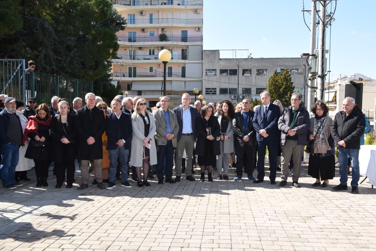 «Η συμπαράσταση και ο σεβασμός προς τον πόνο των συγγενών και η ανάγκη να μην ξεχασθούν οι 57 αδικοχαμένες ψυχές και να μην έχουμε άλλα Τέμπη στο μέλλον, οδήγησαν τη δημοτική αρχή να εισηγηθεί και το Δημοτικό Συμβούλιο να αποφασίσει ομόφωνα τον Ιούνιο του 2024 να ανεγείρει ένα λιτό μνημείο υπενθύμισης αυτής της τραγωδίας. Σήμερα, αποκαλύπτοντας το μνημείο αυτό, ενώνουμε τη φωνή μας με εκείνη των συγγενών και σύσσωμης σχεδόν της ελληνικής κοινωνίας, που απαιτούν απαντήσεις για το τί συνέβη εκείνη τη μοιραία νύχτα, για το τί οδήγησε σ’ αυτήν την τραγωδία, για την απόδοση δικαιοσύνης και ευθυνών, για ασφαλείς σιδηροδρόμους».