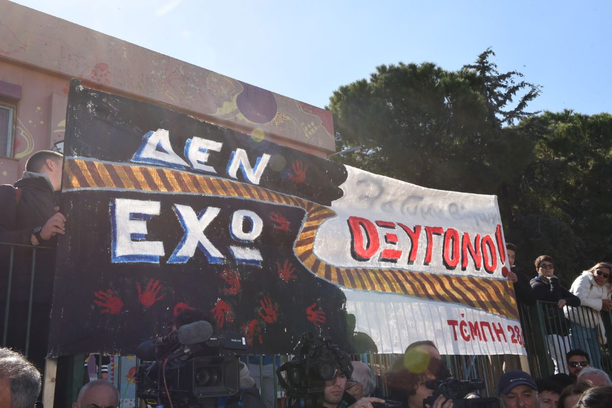 Ο Δήμαρχος Βύρωνα Αλέξης Σωτηρόπουλος και οι συγγενείς των θυμάτων ο κύριος Χατζηχαραλάμπους, η κυρία Βουτσινά και ο κύριος Βούλγαρης, έκαναν τα αποκαλυπτήρια του Μνημείου στην είσοδο των σχολείων 5ου και 11ου Δημοτικών, στη μνήμη των θυμάτων της σιδηροδρομικής τραγωδίας των Τεμπών.