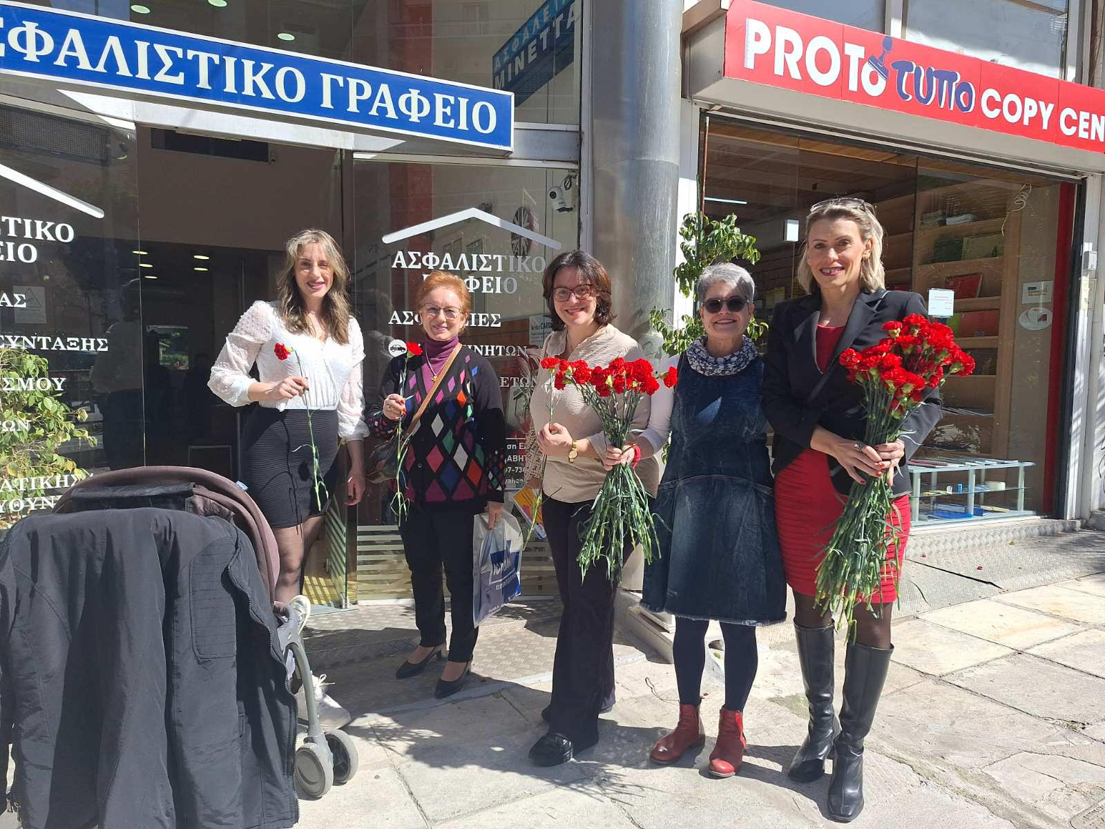 Τίμησαν δίνοντας στις εργαζόμενες γυναίκες της πόλης ένα κόκκινο γαρύφαλλο, υπενθυμίζοντας αλλά και λαμβάνοντας τη δέσμευση με αυτό τον τρόπο πως δεν είναι μόνες και πως «είμαστε πάντα δυνατές και πάντα ενωμένες!».