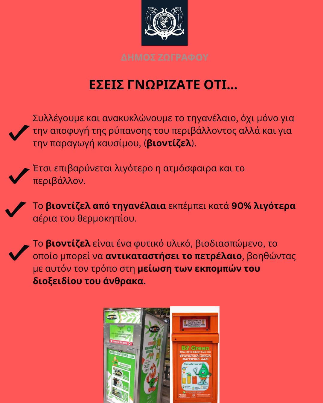 Διευρύνεται συνεχώς η λίστα των συστημάτων ανακύκλωσης στα οποία συμμετέχει ο Δήμος Ζωγράφου, με στόχο την προστασία του περιβάλλοντος, για μια πόλη βιώσιμη και καθαρή!