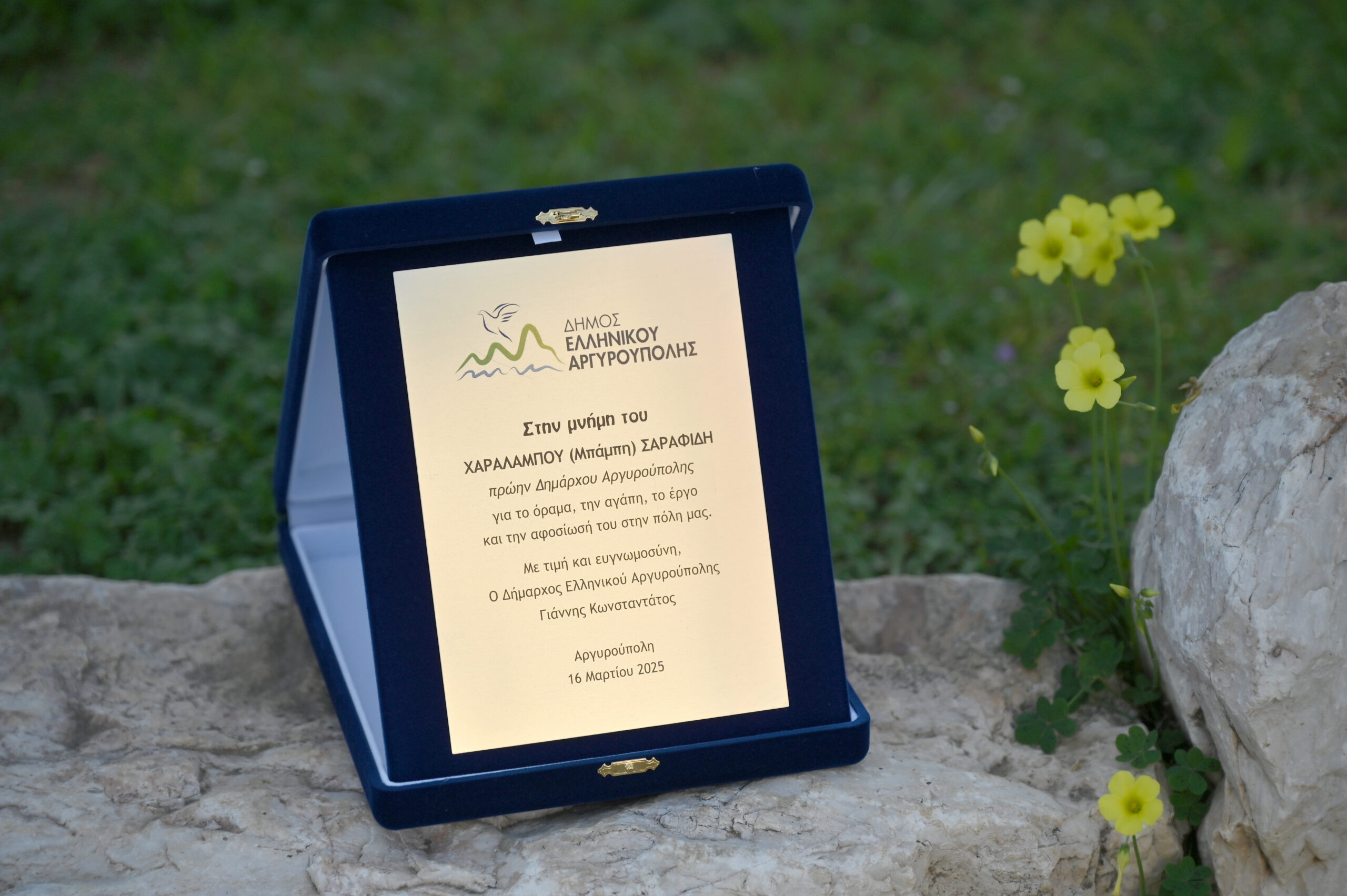 Με ιδιαίτερη συγκίνηση πραγματοποιήθηκε, την Κυριακή 16 Μαρτίου, η τιμητική εκδήλωση στη μνήμη του τέως Δημάρχου Αργυρούπολης, Χαράλαμπου (Μπάμπη) Σαραφίδη, στο Πολιτιστικό Συνεδριακό Κέντρο «Μίκης Θεοδωράκης», ακριβώς τρία χρόνια από την ημέρα που έφυγε από τη ζωή. Μια ημέρα αφιερωμένη σε έναν άνθρωπο που άφησε ανεξίτηλο το αποτύπωμά του στην πόλη, με το έργο του να αποτελεί πολύτιμη παρακαταθήκη για τις επόμενες γενιές.