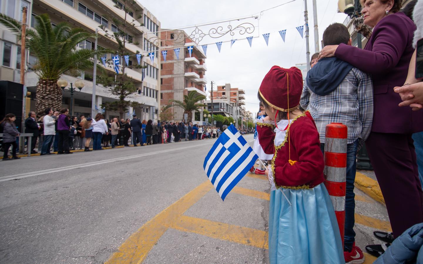 Στη συνέχεια έγινε η κατάθεση στεφάνων, η τήρηση ενός λεπτού σιγής στη μνήμη των αγωνιστών και αγωνιστριών της Επανάστασης του 1821, η ανάκρουση του εθνικού ύμνου και η μαθητική παρέλαση στη Λεωφόρο Αγίου Δημητρίου.