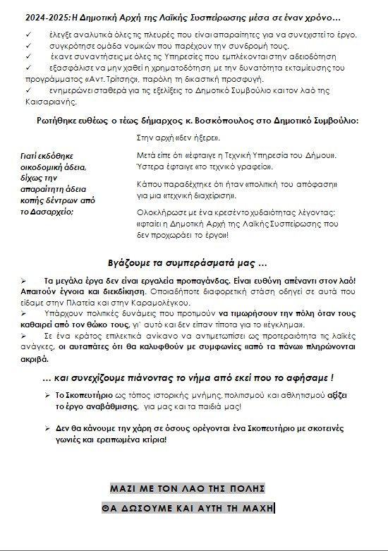 2024-2025: Η Δημοτική Αρχή της Λαϊκής Συσπείρωσης μέσα σε έναν χρόνο…