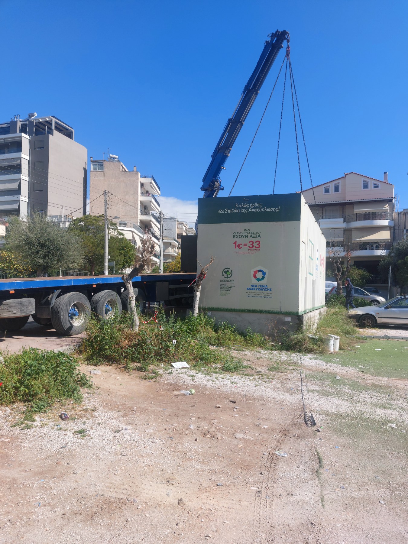Σε οριστική απομάκρυνση της εγκατάστασης της Ανταποδοτικής Εταιρείας Ανακύκλωσης Α.Ε. (Σπιτάκι Ανακύκλωσης) επί των οδών Ευξείνου Πόντου και Σωκίων, προχώρησε ο Δήμος Νέας Σμύρνης.