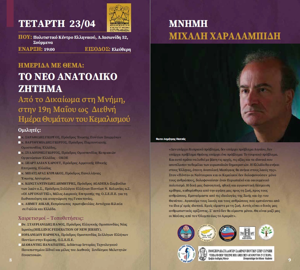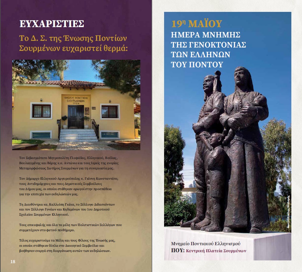 Ο πρόεδρος της Ένωσης Ποντίων Σουρμένων, Γιώργος Στυλ. Σαραφίδης, στον χαιρετισμό του αναφέρει: