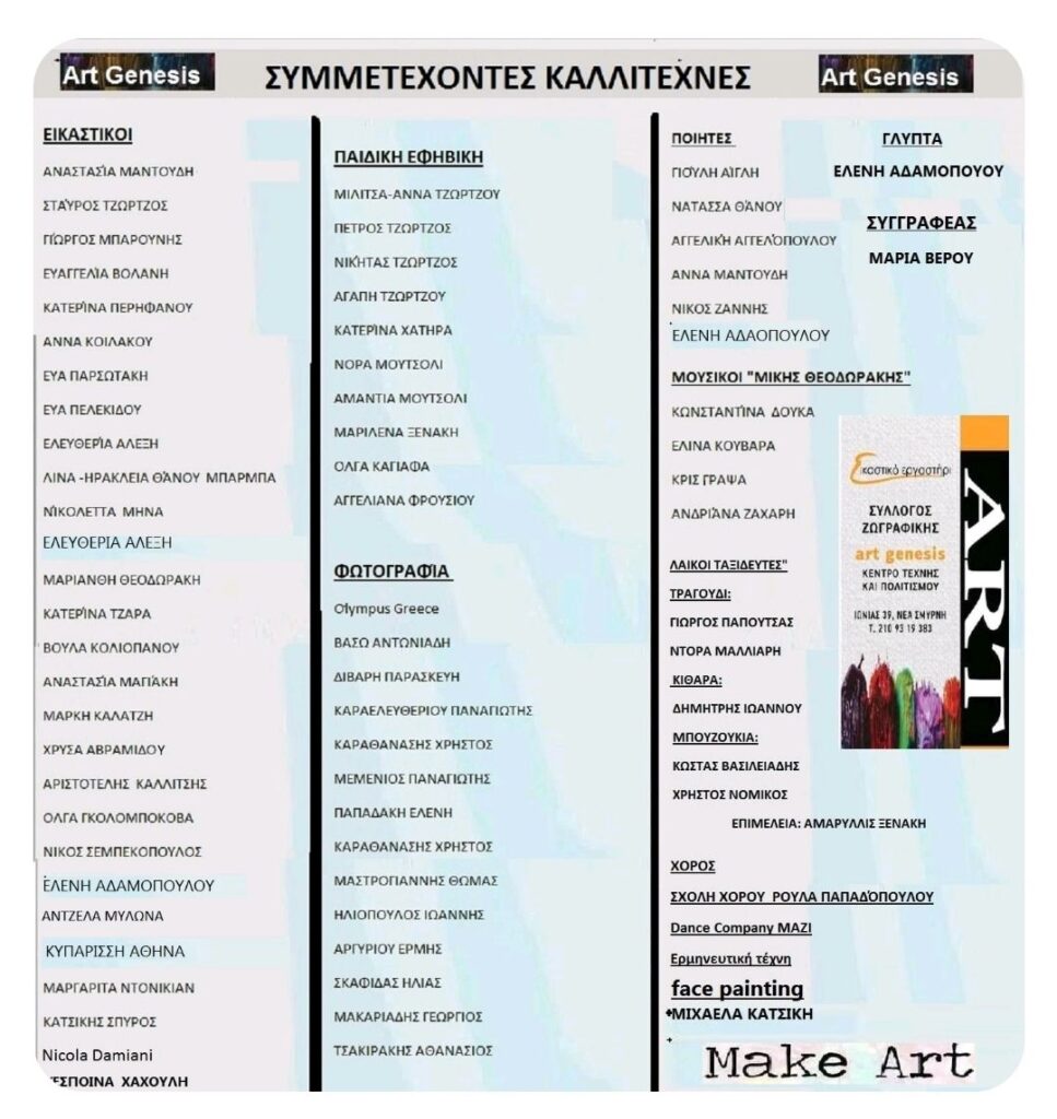 Η Art-Genesis ετοιμάζει διήμερο φεστιβάλ Πολιτισμού και Τέχνης, που θα περιλαμβάνει όλες τις τέχνες εν δράση.
