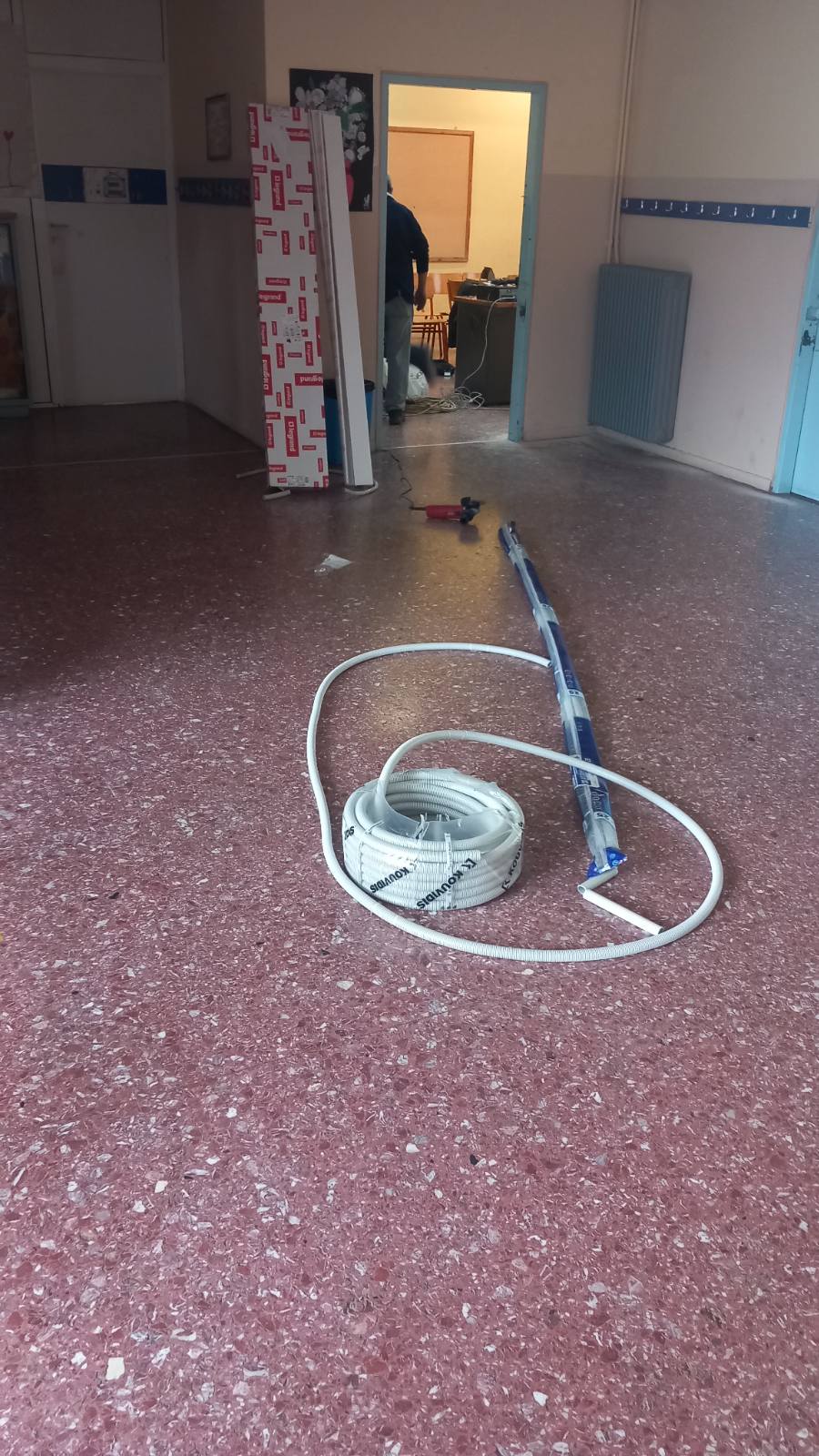 Στο 7ο Δημοτικό Σχολείο ξεκίνησε η εγκατάσταση δικτύου σε νέα αίθουσα για το μάθημα των ηλεκτρονικών υπολογιστών, σε αναπλήρωση εκείνης που παραμένει κλειστή.