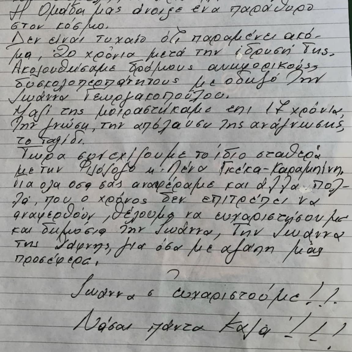 «Aποχαιρετάμε με βαθιά θλίψη έναν πολυσχιδή και φωτεινό άνθρωπο των γραμμάτων, την Ιωάννα Γεωργακοπούλου, που με το έργο και το ήθος της άφησε ανεξίτηλο αποτύπωμα στον χώρο της λογοτεχνίας, της παιδείας και ιδιαίτερα στην πόλη μας.