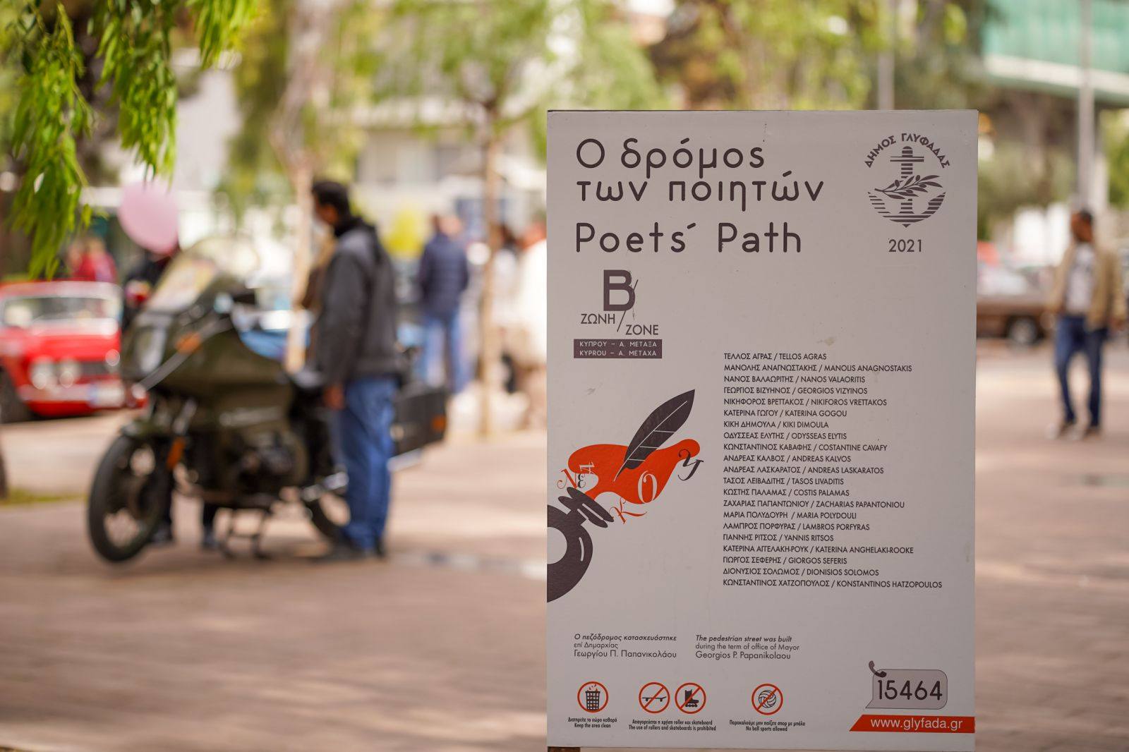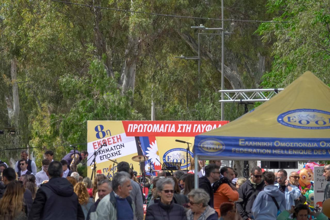 Σε μια μεγάλη πίστα μετατράπηκε και φέτος ο «Δρόμος των Ποιητών» και τριγύρω, σε κάθετη διάταξη στις ειδικά διαμορφωμένες θέσεις πάρκινγκ, αυτοκίνητα του περασμένου αιώνα, φροντισμένα και καλογυαλισμένα από τους ιδιοκτήτες τους, αλλά και μηχανές και στρατιωτικά τζιπ, ακόμη και λεωφορεία, έδιναν το δικό τους χαρούμενο και νοσταλγικό τόνο στην όμορφη εκδήλωση που διοργάνωσε ο Δήμος Γλυφάδας σε συνεργασία με την Ελληνική Ομοσπονδία Οχημάτων Εποχής (Ε.Ο.Ο.Ε).