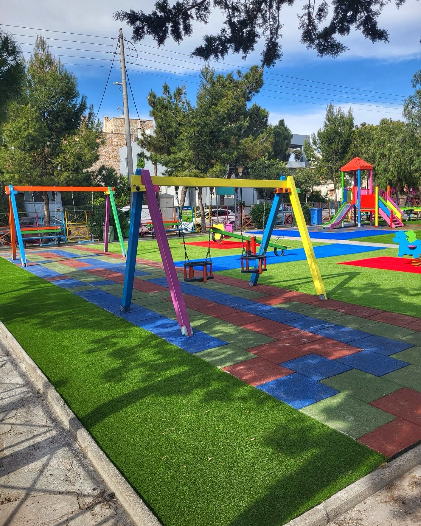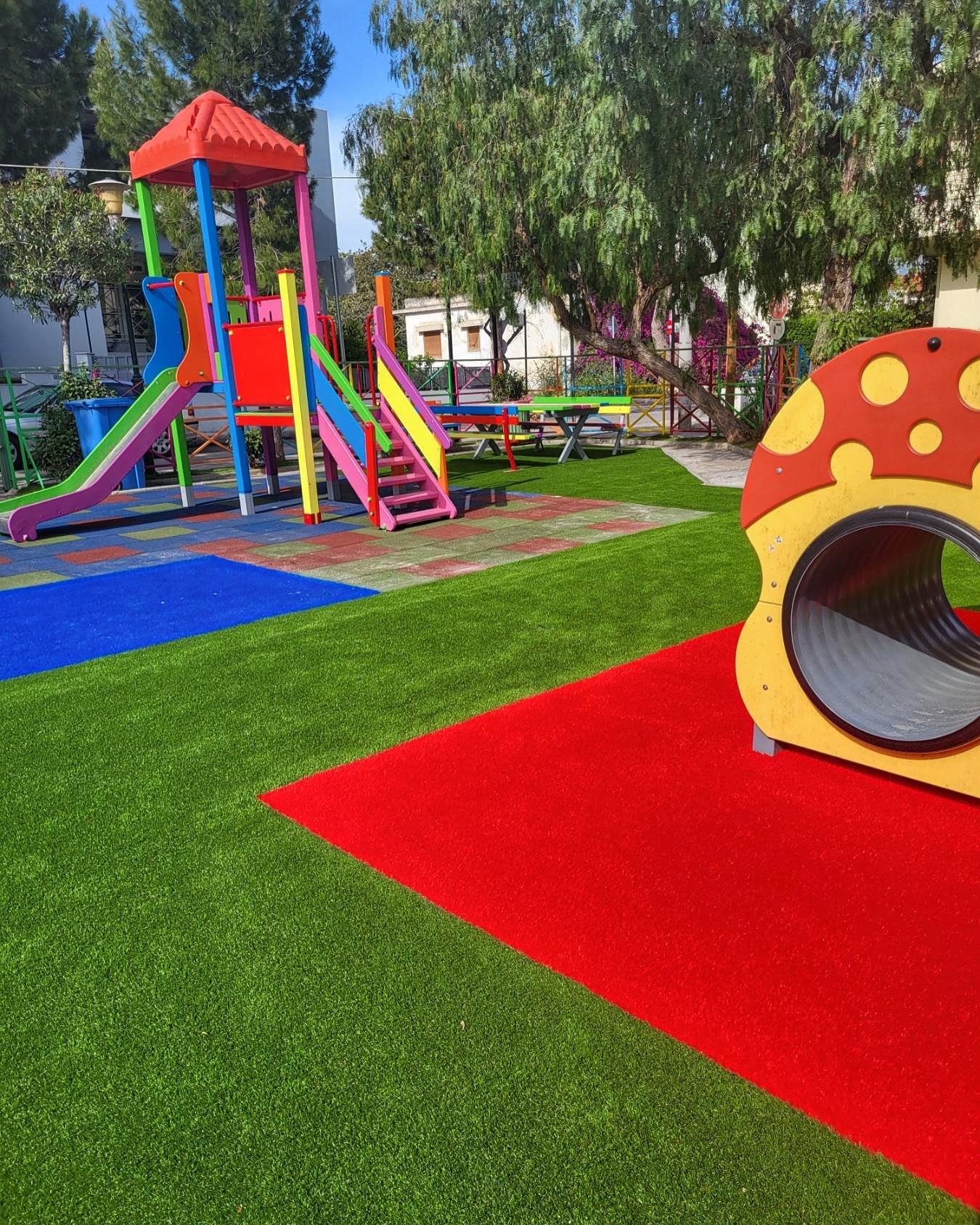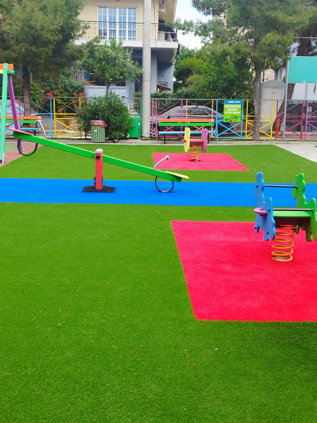 - αντικαταστάθηκε το δάπεδο ασφαλείας και ο χλοοτάπητας