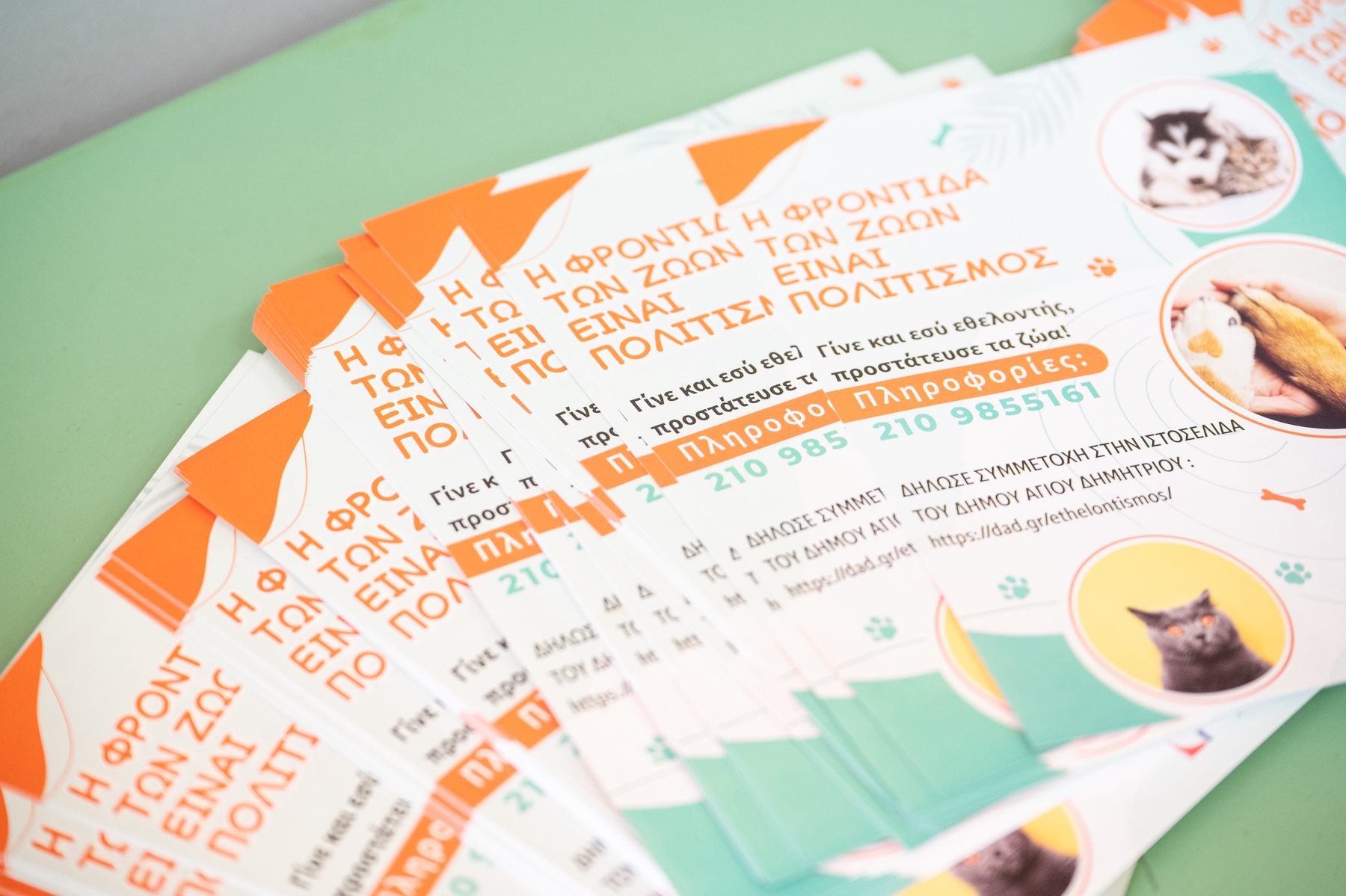 Στο πλαίσιο της δράσης διανεμήθηκε ενημερωτικό υλικό σχετικό με το θεσμικό πλαίσιο για την προστασία των ζώων, ενώ προφέρθηκε κέρασμα σε όλους τους συμμετέχοντες.