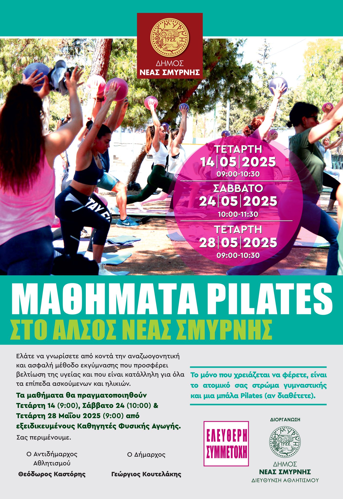 Τα μαθήματα θα πραγματοποιηθούν από εξειδικευμένους Καθηγητές Φυσικής Αγωγής και η συμμετοχή είναι ελεύθερη.