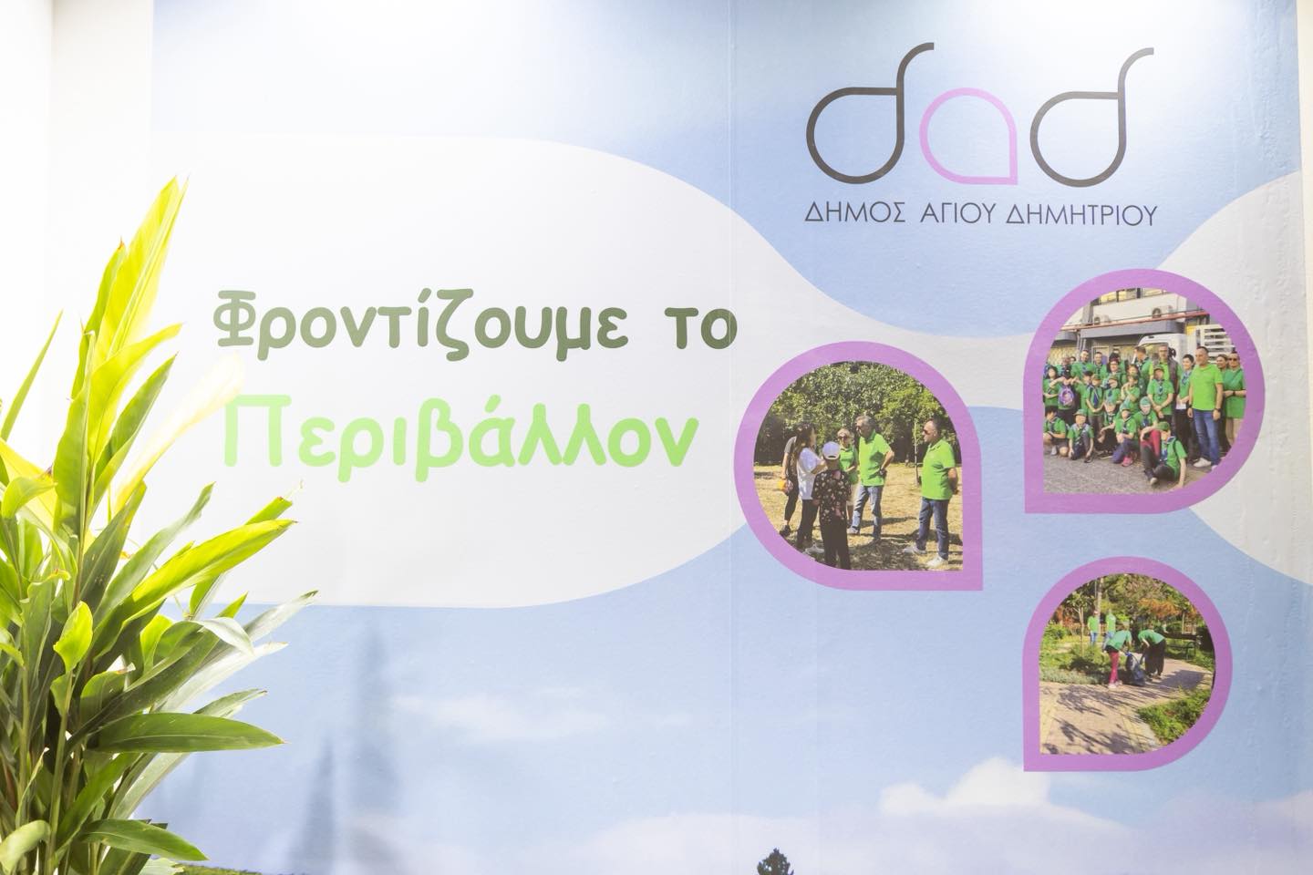 Ο Δήμος Αγίου Δημητρίου διαθέτει δικό του περίπτερο στον εκθεσιακό χώρο, μέσω του οποίου παρουσιάζονται οι περιβαλλοντικές δράσεις που έχουν στόχο τη βελτίωση της ποιότητας ζωής των πολιτών και την προστασία του αστικού περιβάλλοντος.