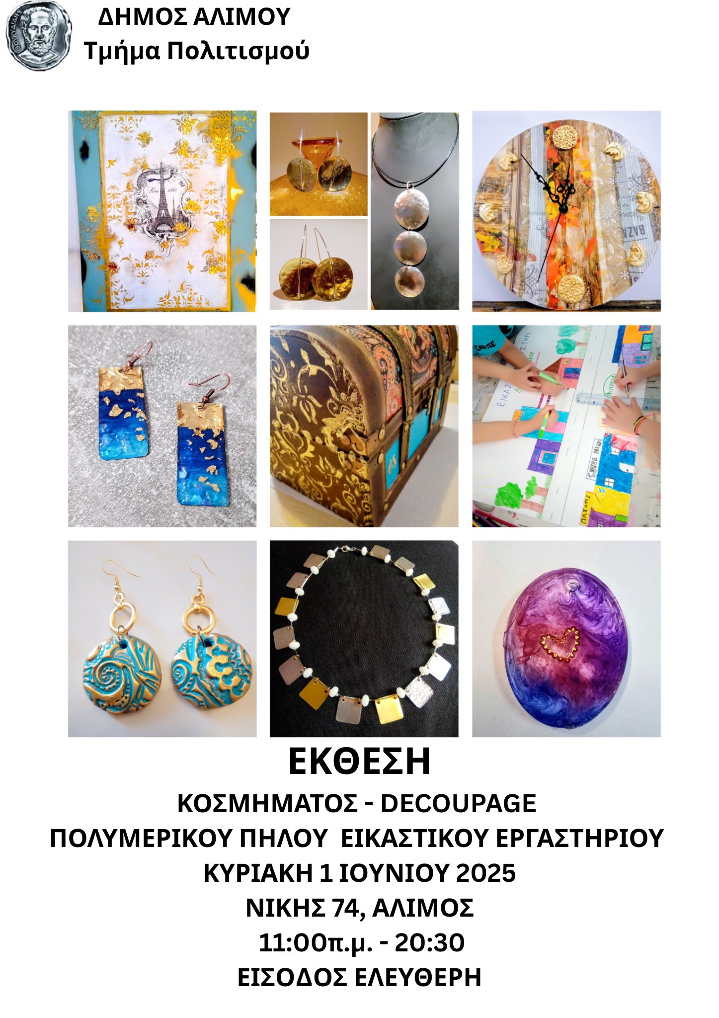 - Την Κυριακή 1η Ιουνίου 2025, από τις 11 π.μ. ως τις 8:30 μ.μ., στην οδό Νίκης 74, Έκθεση χειροποίητου κοσμήματος – decoupage – πολυμερικού πηλού – εικαστικού εργαστηρίου