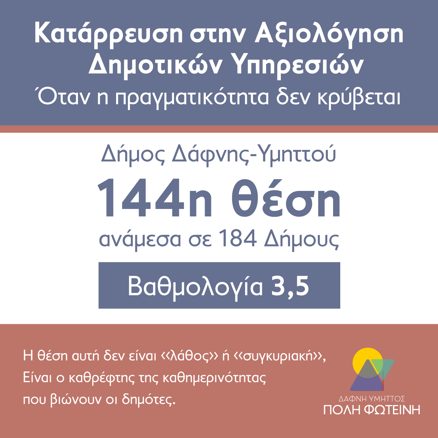 «Σοβαρή Αναφορά στην Αξιολόγηση του Δήμου Δάφνης-Υμηττού. Η πραγματικότητα επιβεβαιώνεται πλέον και με αριθμούς.