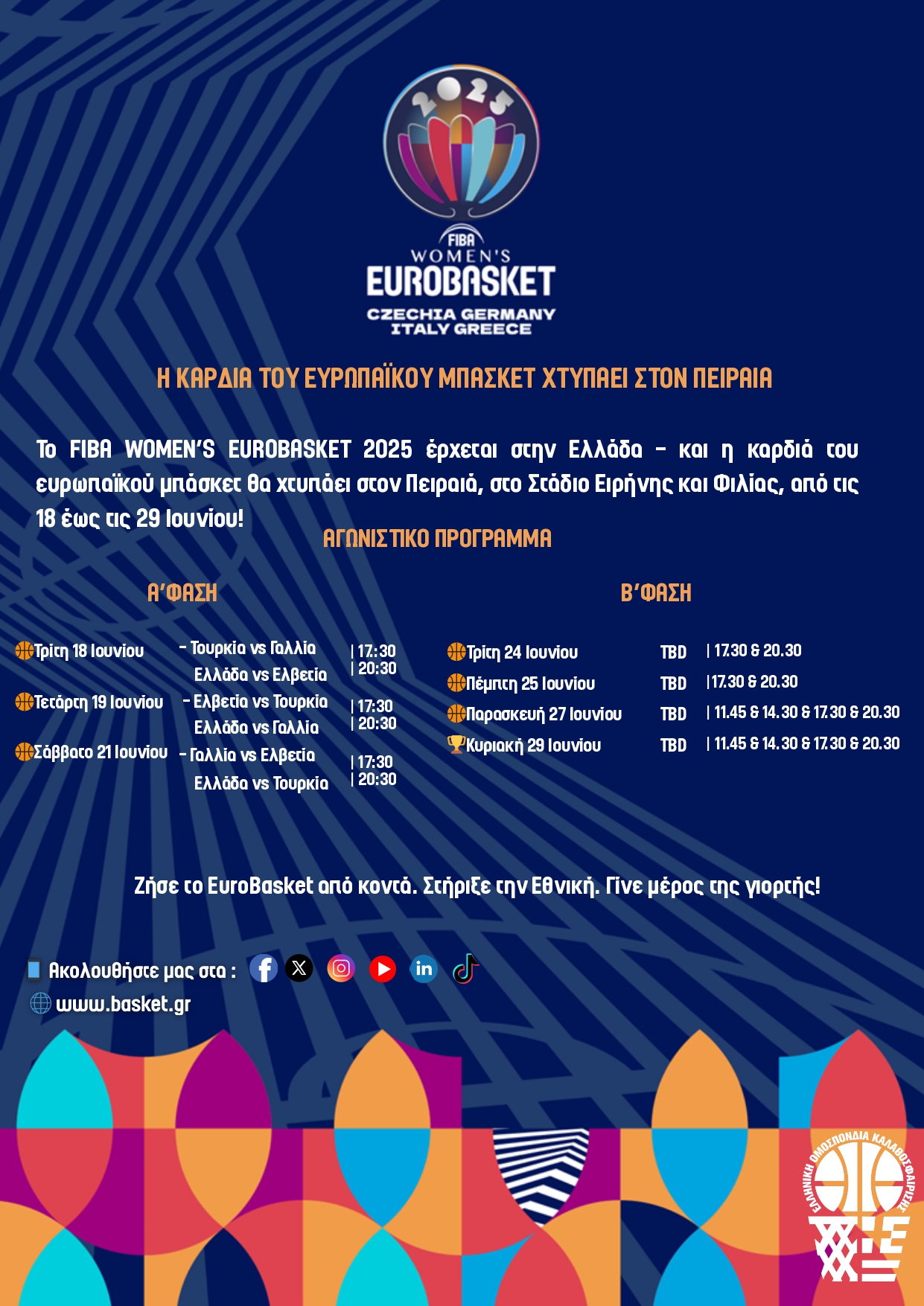 Το μεγαλύτερο ραντεβού του μπάσκετ γυναικών για το 2025 έχει δοθεί στο ΣΕΦ, για το FIBA Women’s Eurobasket 2025 από τις 18 ως τις 29 Ιουνίου.