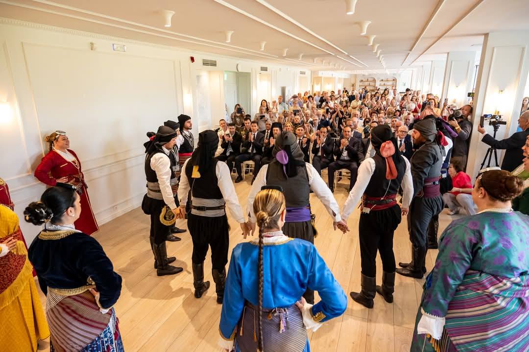 Προς τιμήν του Προέδρου, το χορευτικό της Ένωσης Ποντίων Γλυφάδας «Η Ρωμανία» χόρεψε Κυπριακούς και Ποντιακούς χορούς.