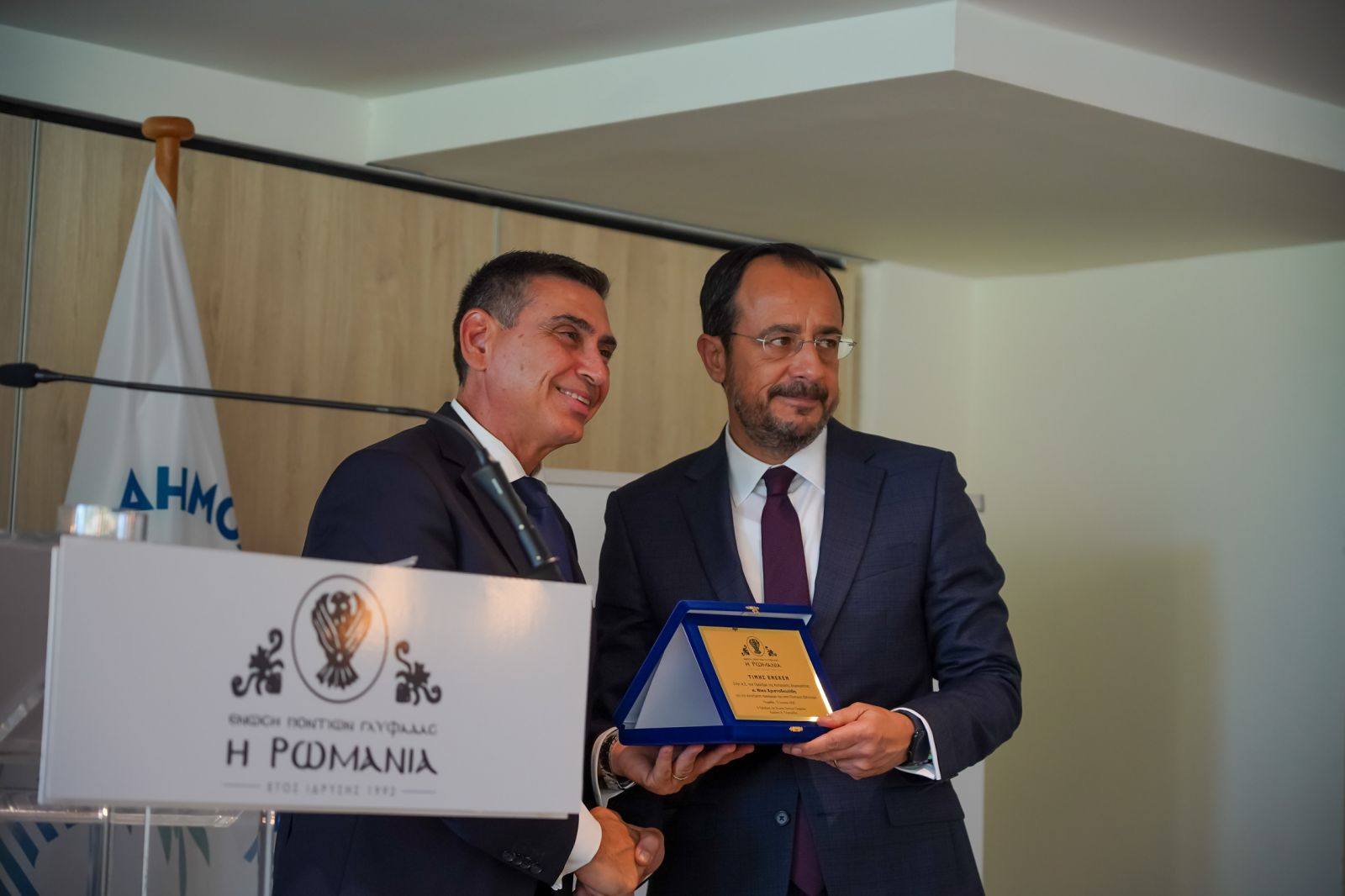 Σε μια εξαιρετική εκδήλωση στο Γκολφ, την οποία διοργάνωσε η Ένωση Ποντίων Γλυφάδας «Η Ρωμανία», υπό την αιγίδα του Προέδρου της Ελληνικής Δημοκρατίας Κωνσταντίνου Τασούλα και με την πολύτιμη αρωγή του Δημάρχου Γλυφάδας Γιώργου Παπανικολάου, ο κ. Χριστοδουλίδης βραβεύθηκε για την ανεκτίμητη προσφορά του στον Ποντιακό Ελληνισμό.