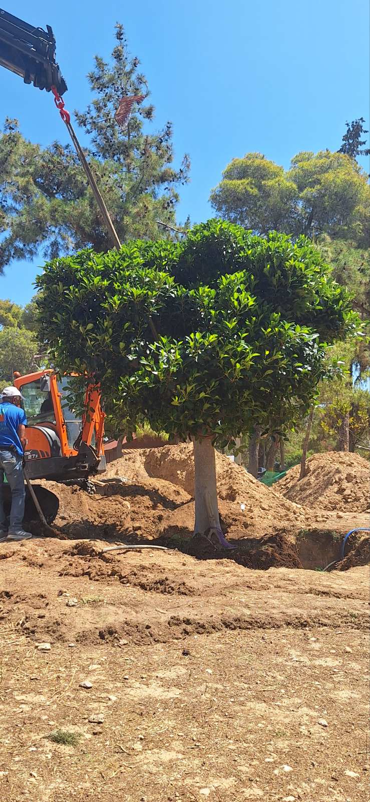 Η αρχή έγινε με μια πανέμορφη Lagunaria patersonia ενώ τα συνεργεία συνεχίζουν τις εκσκαφές για την τοποθέτηση και των υπόλοιπων δέντρων.