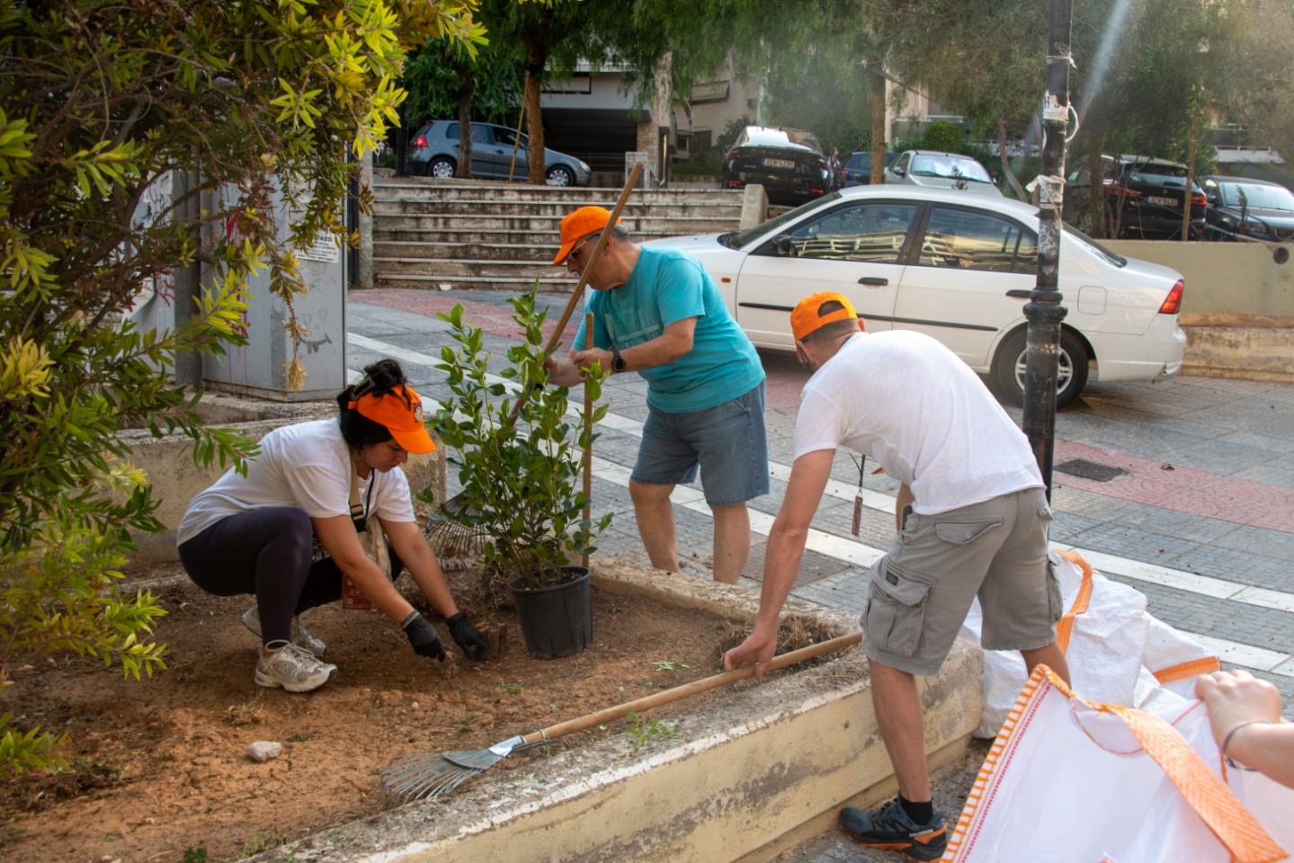 Καπελάκια, νερό αναψυκτικά, μπήκαν στην μάχη του ευπρεπισμού του δημόσιου χώρου και το τελικό αποτέλεσμα ενθουσίασε τους πάντες. Οι εθελοντές επίσης ανέλαβαν την πρωτοβουλία να συνεχίσουν να φροντίζουν και να ποτίζουν προγραμματισμένα και συντονισμένα τόσο τις νέες φυτεύσεις των φυτών όσο και τις υπάρχουσες.