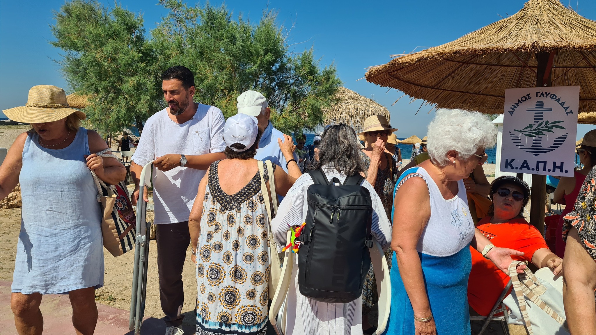 Από τις 8:30 το πρωί της Τρίτης, που έφθασε το πρώτο δρομολόγιο στη Γ΄ Μαρίνα Γλυφάδας, η παραλία γέμισε παρέες. Παρέες χαρούμενες, γεμάτες κέφι και όρεξη για δροσερές βουτιές. Ο Εντεταλμένος για τα ΚΑΠΗ Δημοτικός Σύμβουλος Βασίλης Νικάκης, μαζί με τον Αντιδήμαρχο Πόλης και Καθημερινότητας Νίκο Τσαμπίρα που επιμελήθηκε τις εντυπωσιακές αλλαγές στον περιβάλλοντα χώρο, υποδέχονταν με ευγένεια, χαμόγελο, καρέκλες για την παραλία και δροσερό νερό τους ηλικιωμένους, οι οποίοι έφθαναν σταδιακά, με τρία πούλμαν, έναντι δύο πέρσι.