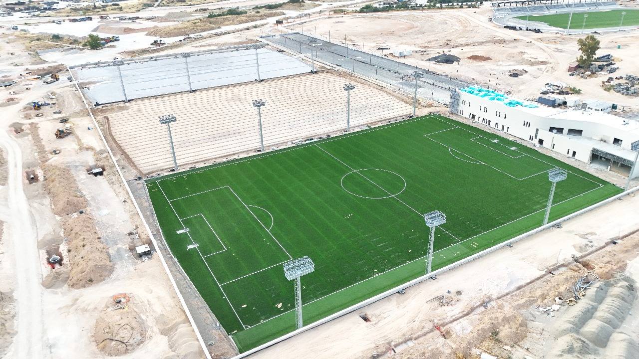 Ήδη ολοκληρώθηκε ο στίβος και παραδίδεται τον άλλο μήνα, ενώ ακολουθεί το κολυμβητήριο Ολυμπιακών διαστάσεων, 5 γήπεδα ποδοσφαίρου, γήπεδα τένις, padel, βόλευ και ειδικοί διάδρομοι για περπάτημα με αποδυτήρια, που θα διαθέτουν μέχρι και σάουνα ενώ θα υπάρχει λίμνη και πάρκο για παιχνίδι.