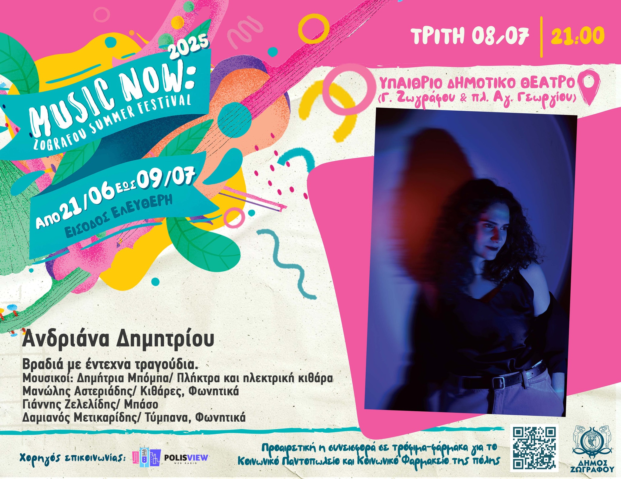 «Ζωγράφου Summer Festival 2025» – Η Ανδριάνα Δημητρίου απόψε στο Υπαίθριο Δημοτικό Θέατρο
