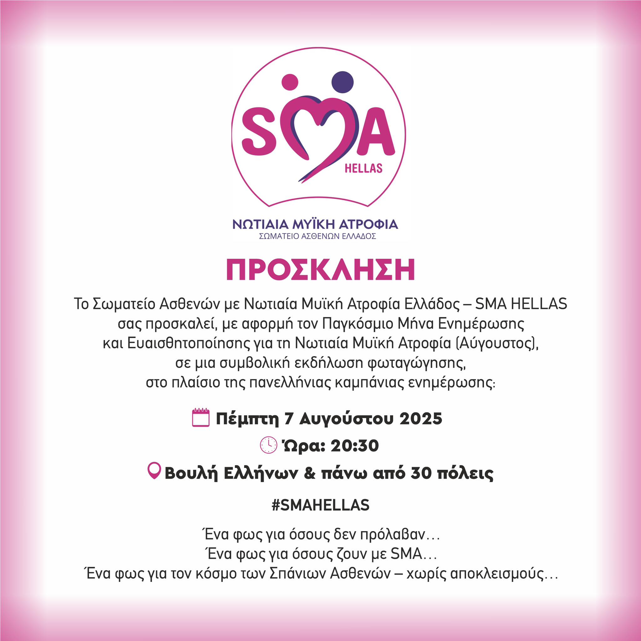 Ο Δήμος Αγίου Δημητρίου συμμετέχει στην Παγκόσμια Ημέρα Ενημέρωσης και Ευαισθητοποίησης για τη Νωτιαία Μυϊκή Ατροφία (SMA).