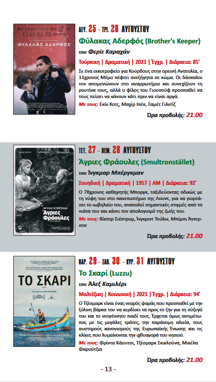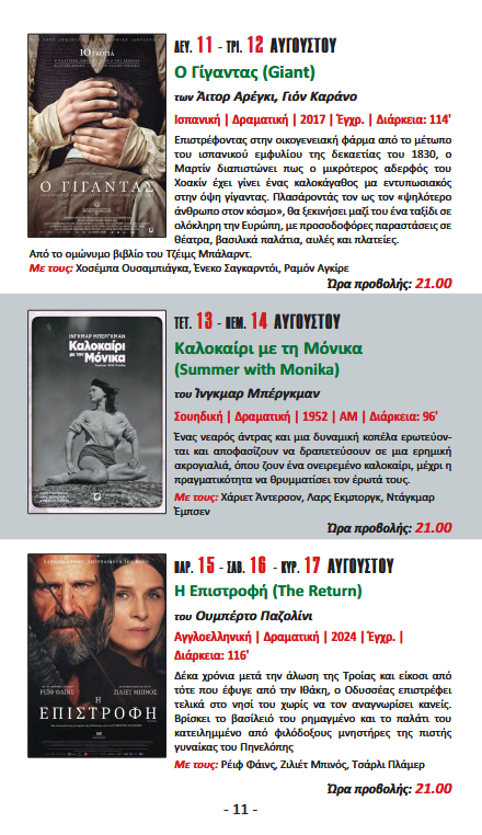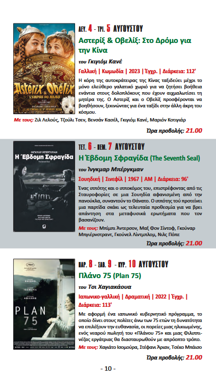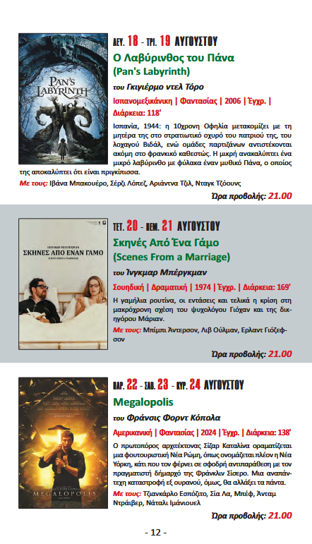 Δείτε, παρακάτω, αναλυτικά το πρόγραμμα προβολών του Αυγούστου: