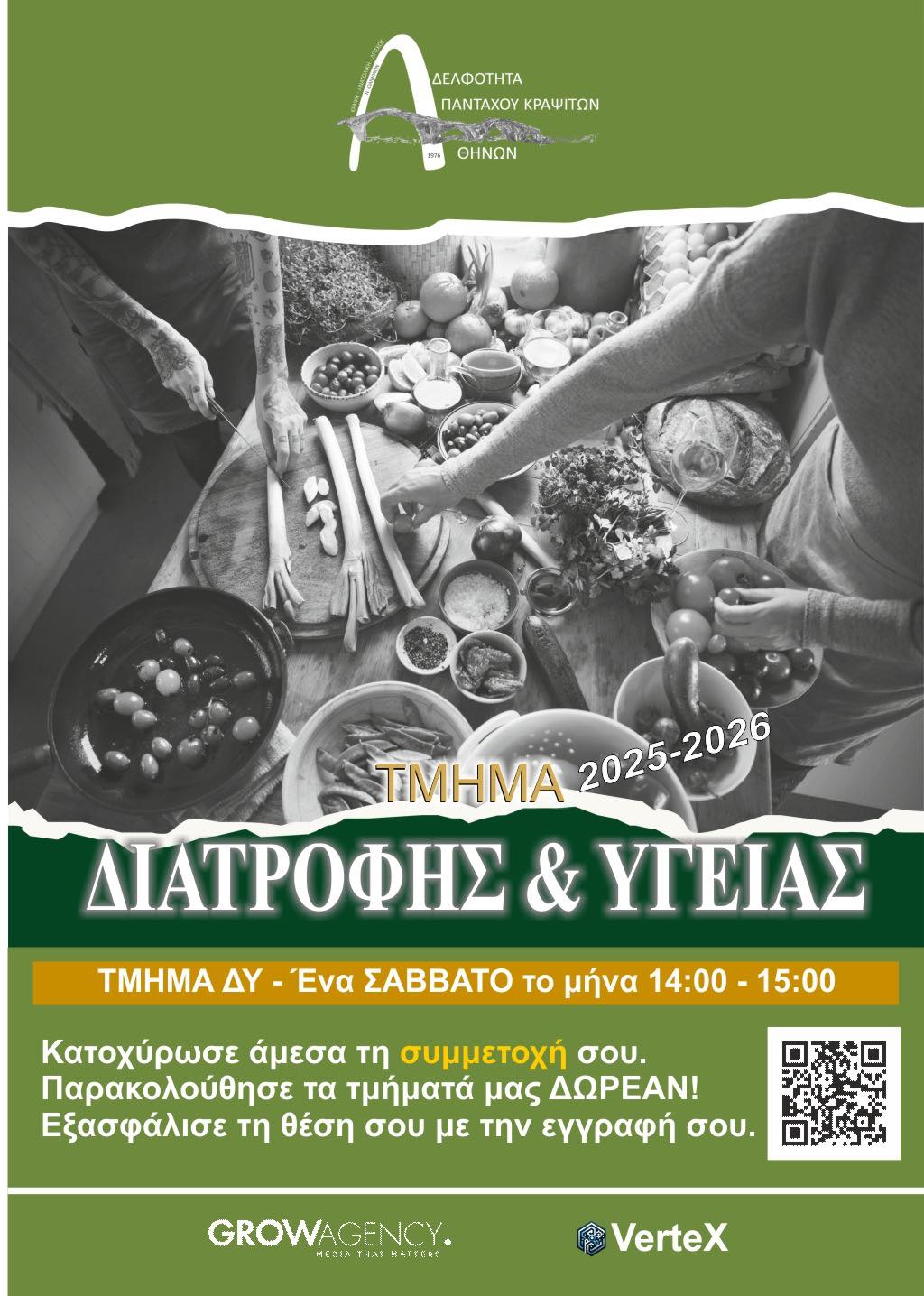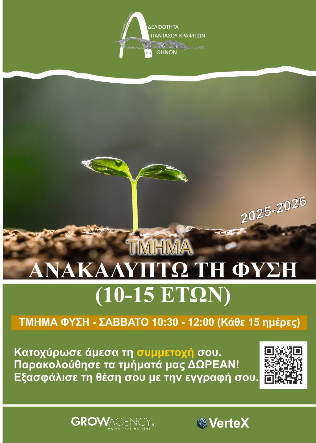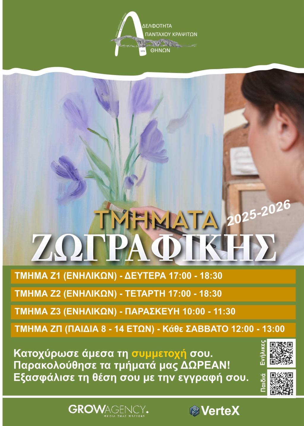 Η πλατφόρμα των αιτήσεων θα παραμείνει ανοιχτή μέχρι τον Μάρτιο 2026 και η ετήσια Εγγραφή είναι €25 ανά τμήμα.