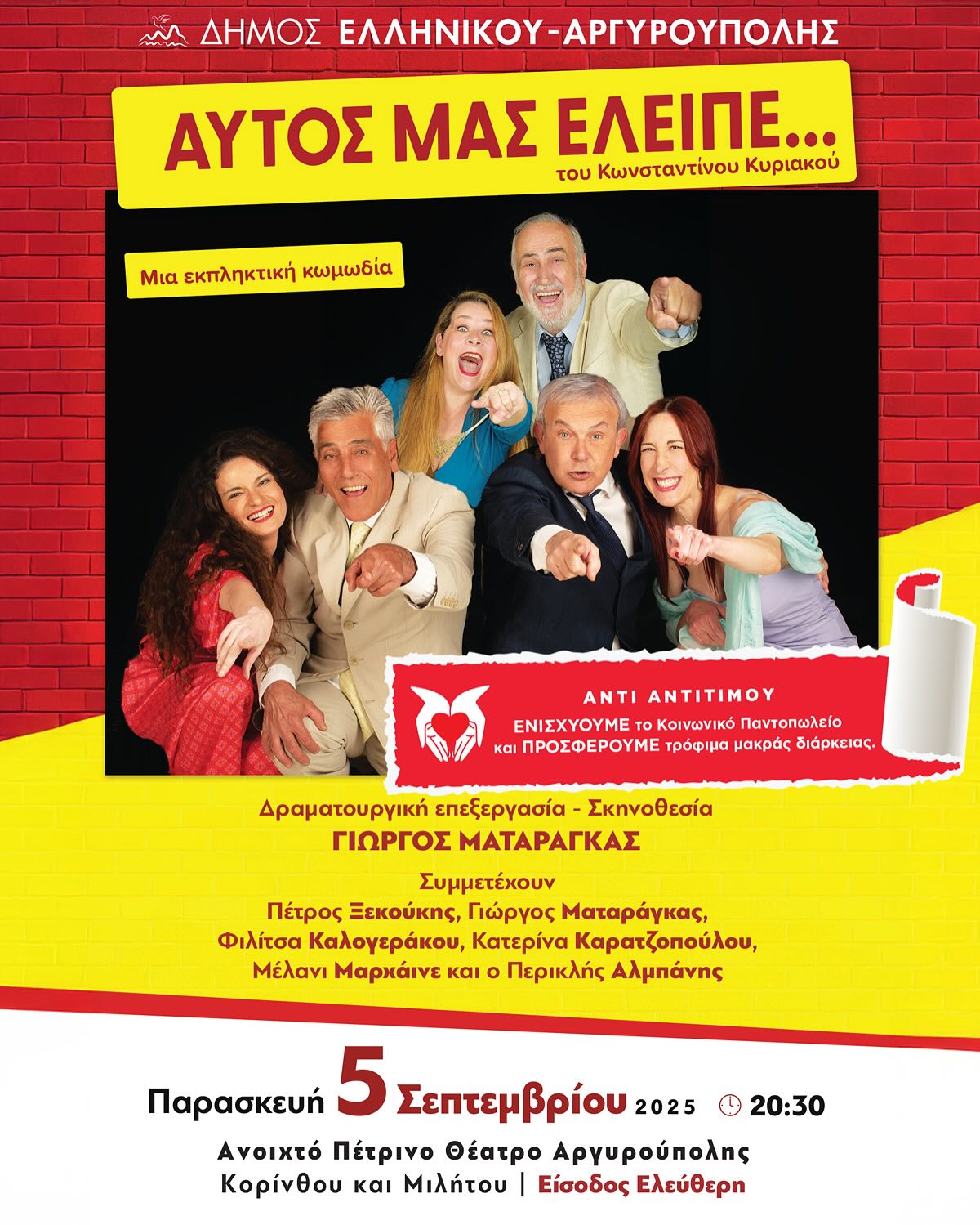 Σε δήλωση του ο Δήμαρχος Ελληνικού – Αργυρούπολης Γιάννης Κωνσταντάτος σημείωσε: «Ο Σεπτέμβριος είναι για τον Δήμο μας ένας μήνας γεμάτος φως, χρώμα και πολιτισμό. Είναι η εποχή που καθώς η πόλη επιστρέφει στους ρυθμούς της καθημερινότητας, εμείς της χαρίζουμε στιγμές ξεγνοιασιάς και ποιότητας μέσα από ένα πολυσυλλεκτικό πρόγραμμα θεάτρου και μουσικής.