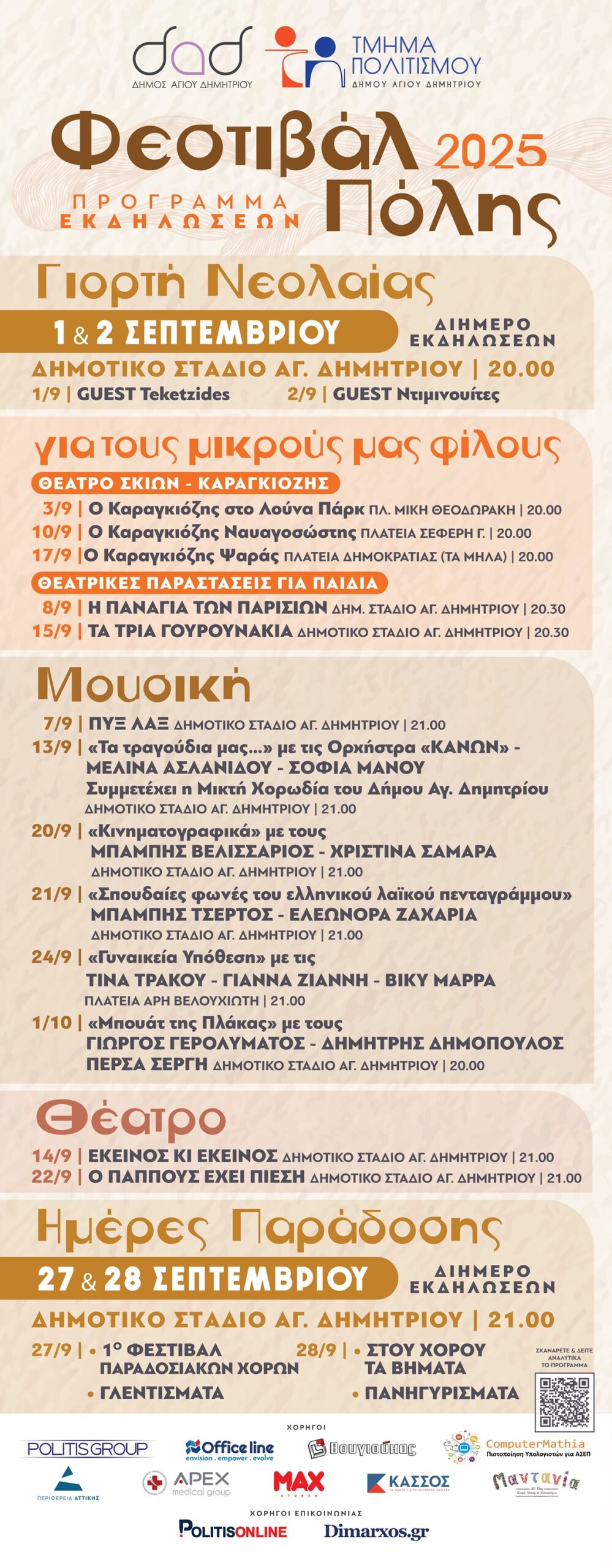 «Φεστιβάλ Πόλης 2025» – Όλες οι εκδηλώσεις του Αγίου Δημητρίου