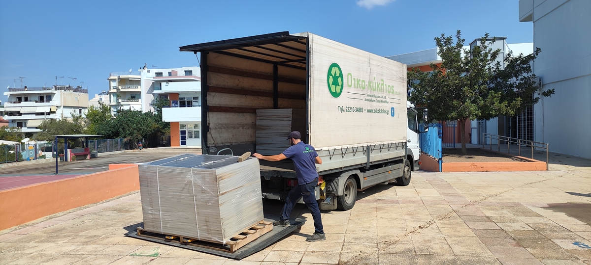 Με ασφαλή και περιβαλλοντικά υπεύθυνο τρόπο απομακρύνθηκαν τα παλαιά φωτοβολταϊκά πλαίσια από σχολικές μονάδες του Δήμου.