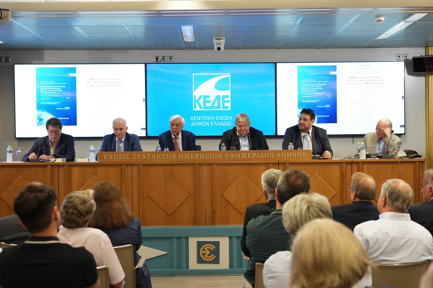 Στην κατάμεστη αίθουσα της ΕΣΗΕΑ πραγματοποιήθηκε την Τετάρτη 17 Σεπτεμβρίου 2025 η παρουσίαση του νέου βιβλίου της Κεντρικής Ένωσης Δήμων Ελλάδας (ΚΕΔΕ), σε συνεργασία με την ΕΕΤΑΑ, με τίτλο: «Η Μεταρρυθμιστική Τεχνική μέσα από την Ιστορική Εξέλιξη των Διοικητικών Μεταρρυθμίσεων στο πεδίο της Αποκέντρωσης και της Τοπικής Αυτοδιοίκησης στην Ελλάδα (1975–2022)».