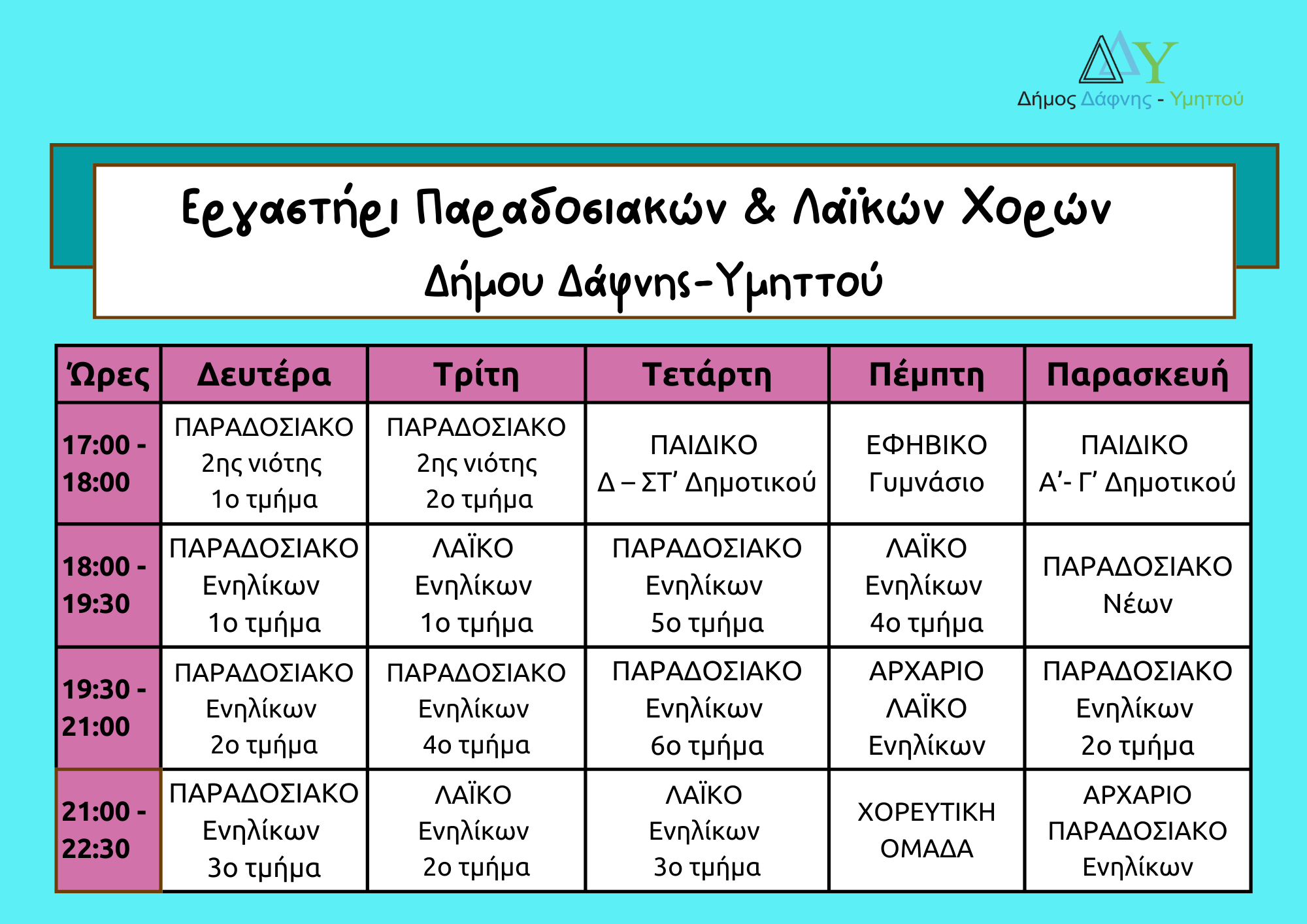 Το Εργαστήρι Παραδοσιακών & Λαϊκών Χορών του Δήμου Δάφνης Υμηττού ανοίγει ξανά τις πόρτες του.